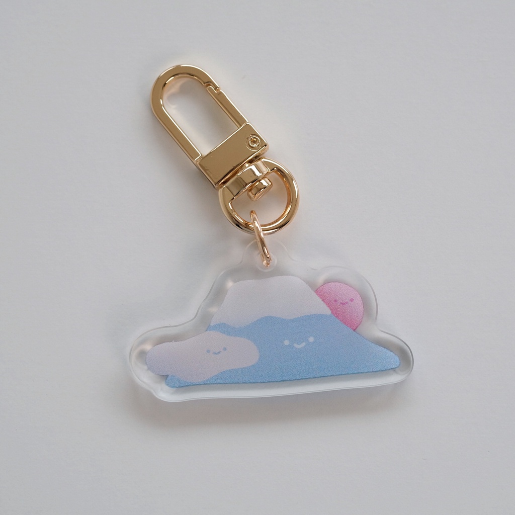 【方坊】壓克力金屬 造型掛飾 軟綿綿富士山 直徑 40mm 鑰匙扣 療癒 鑰匙圈