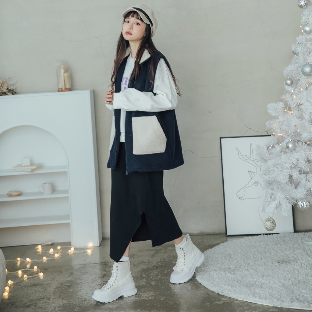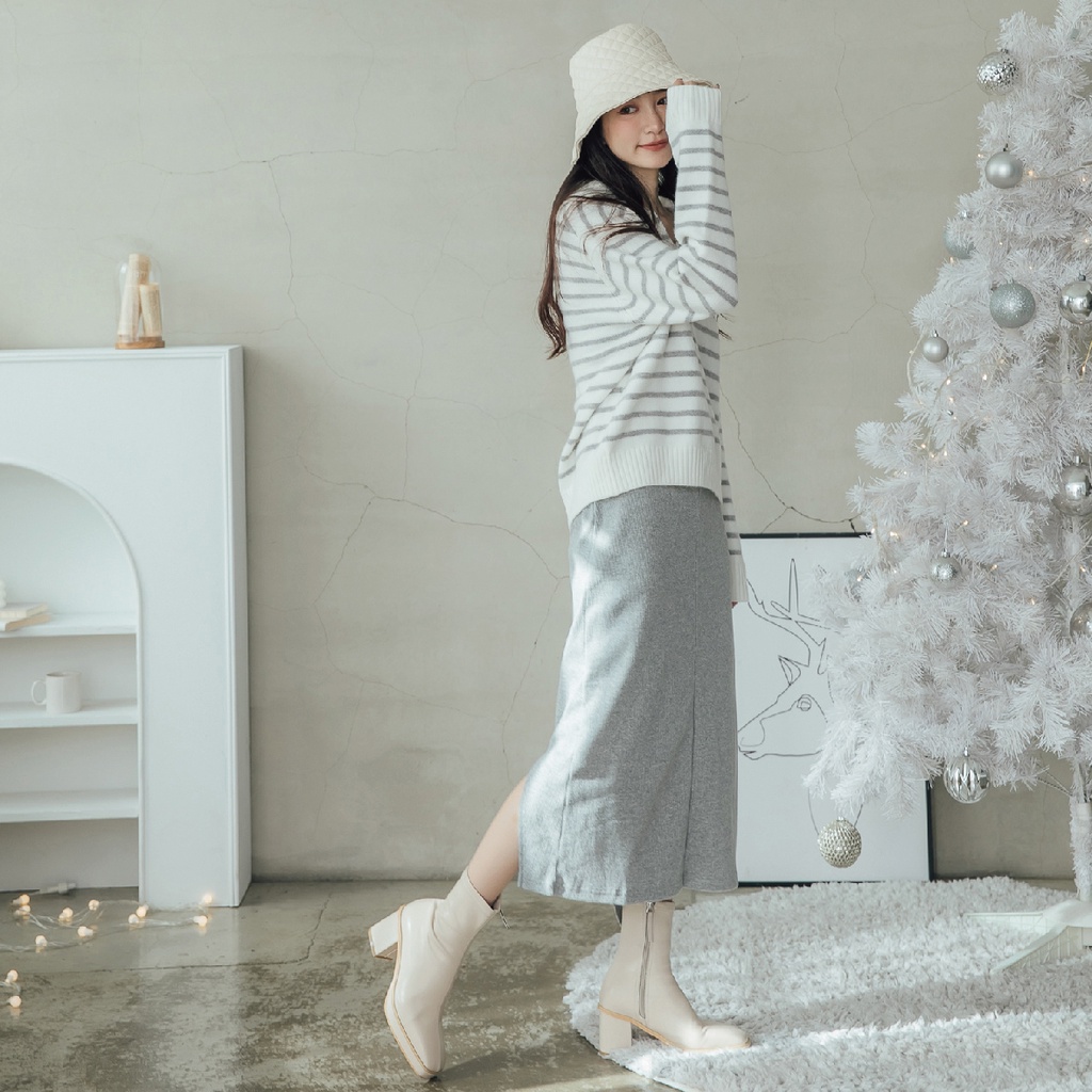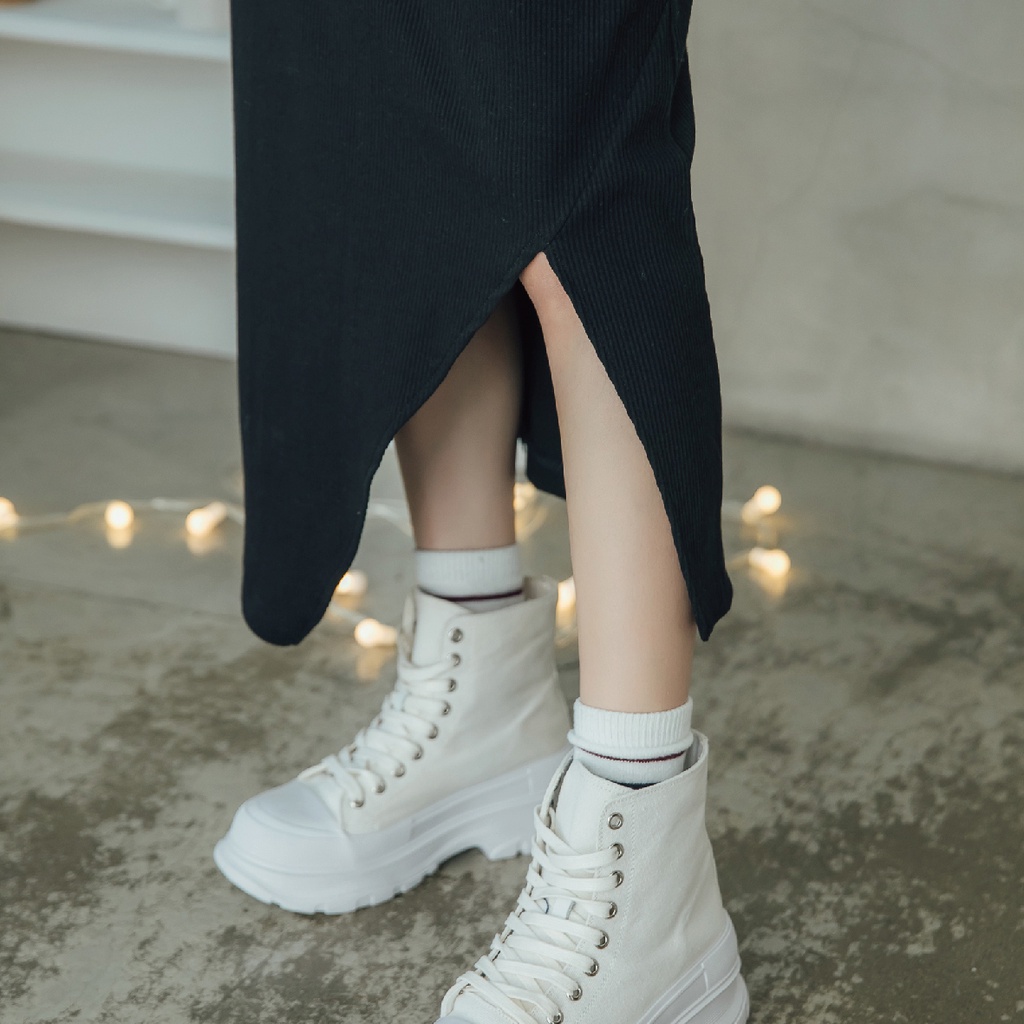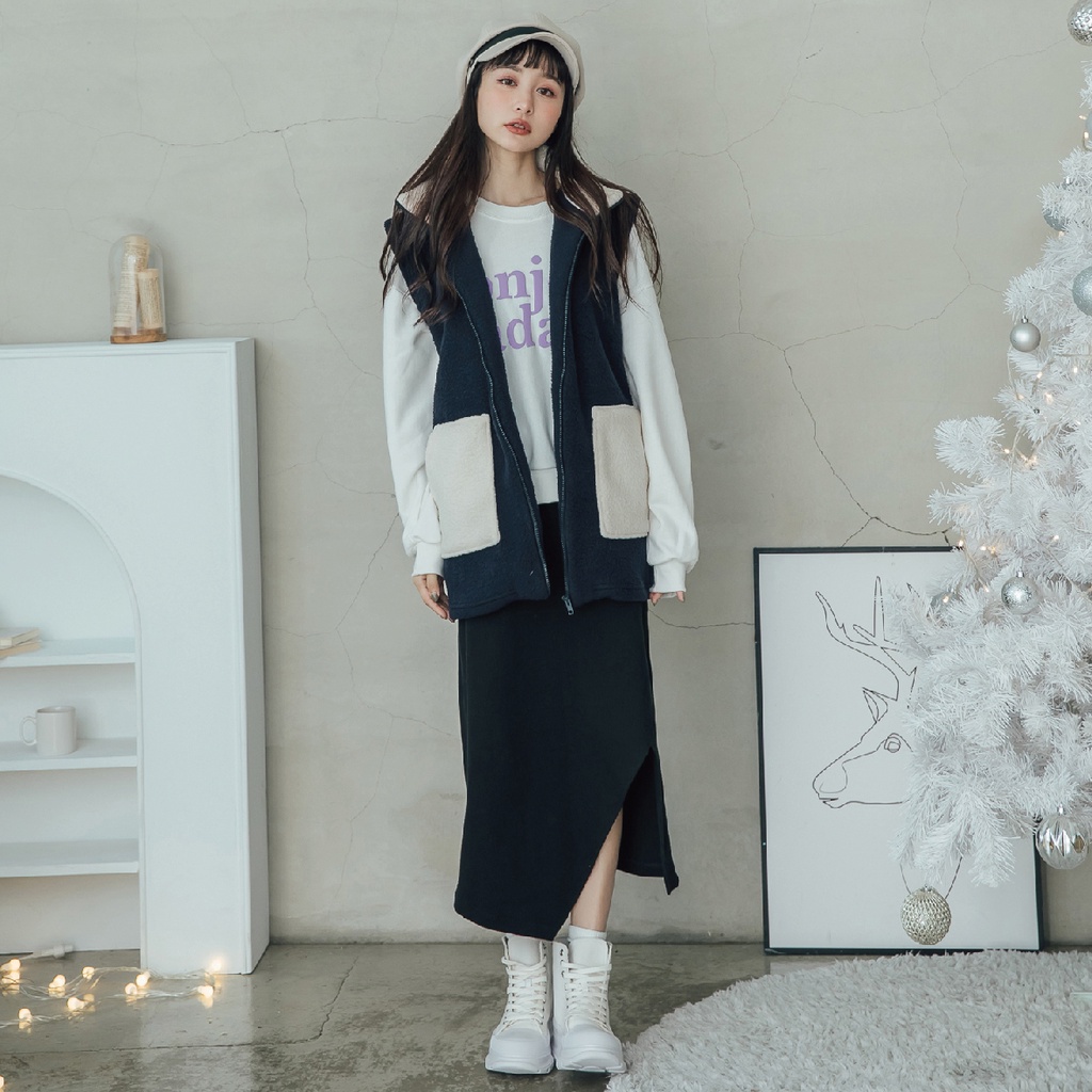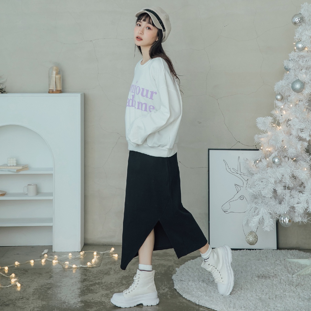 【MISTO SHOP】正韓|MISTO自訂款 開衩鬆緊腰棉裙|2色