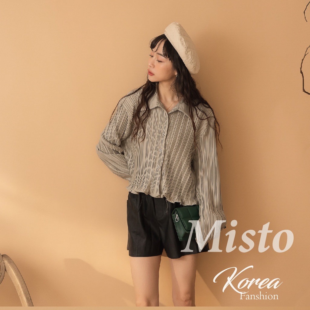 【MISTO SHOP】韓系 皮革鬆緊腰短褲 2色