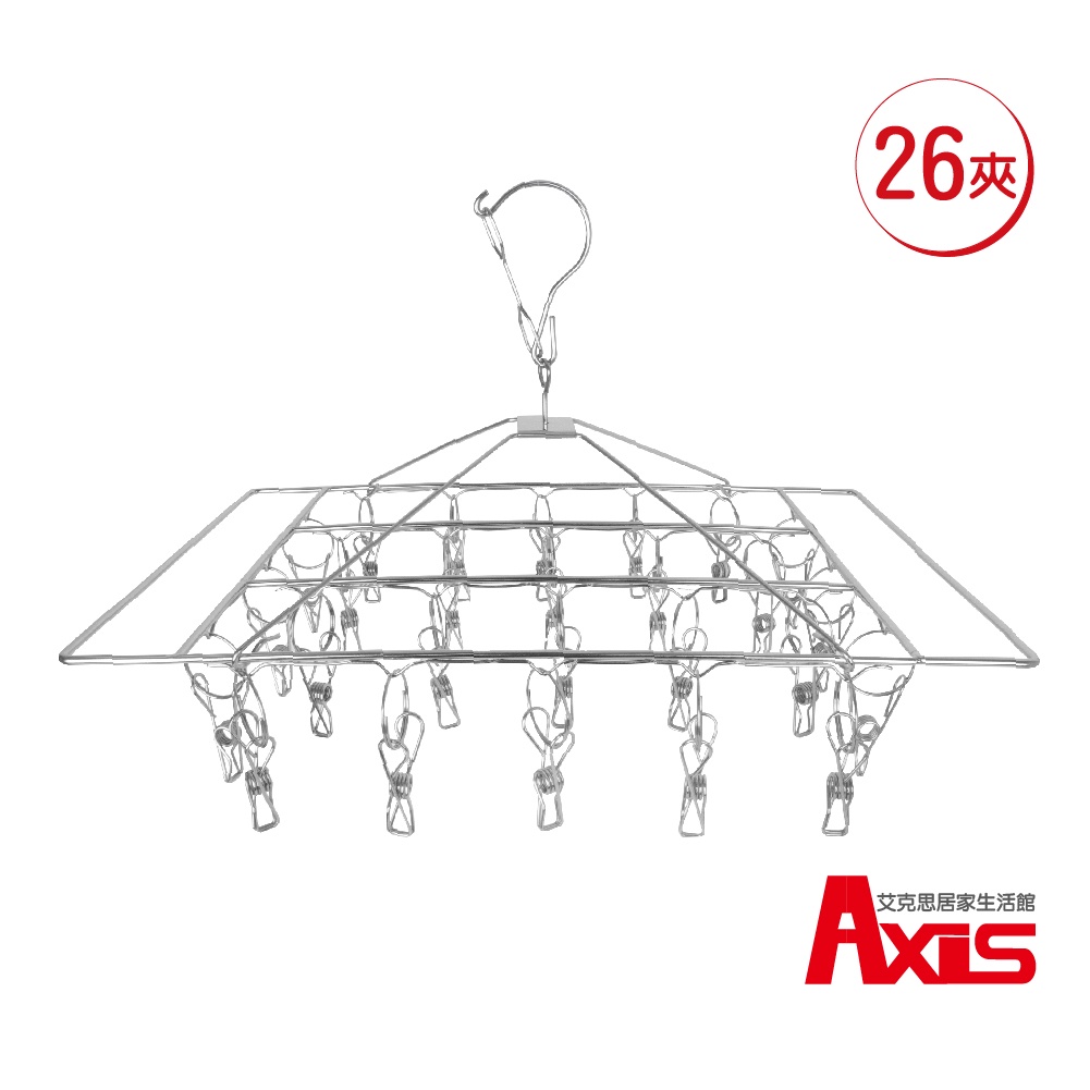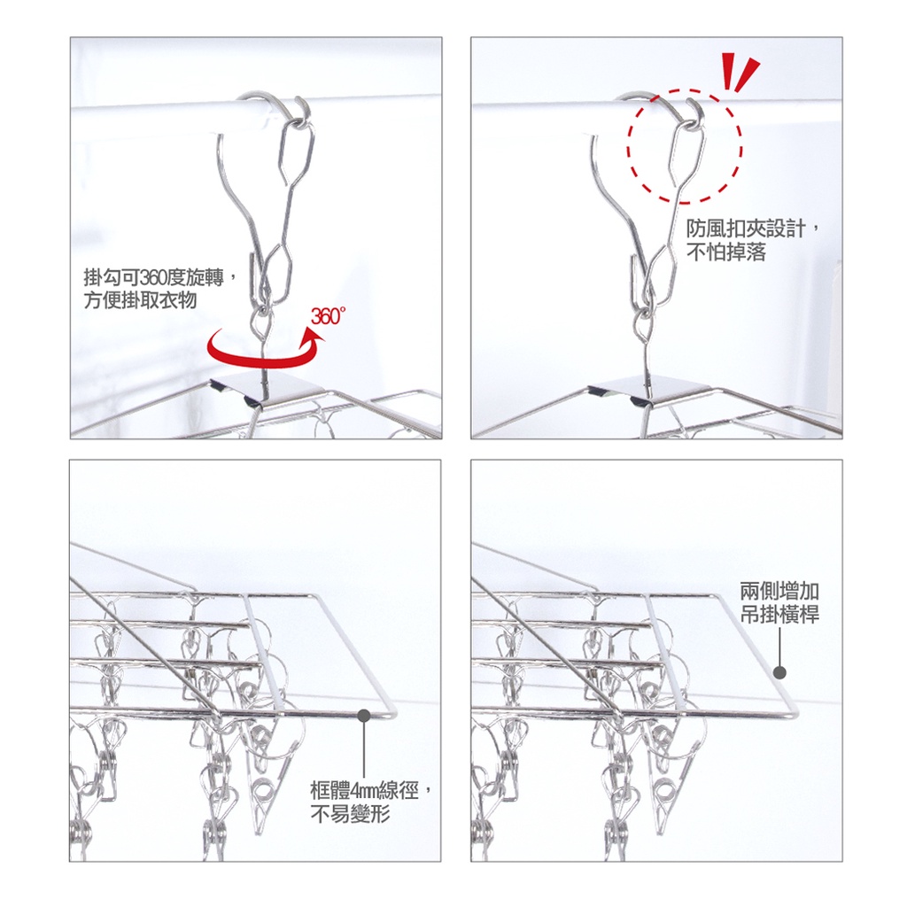《艾克思》防風式不鏽鋼附桿方形曬衣架26夾