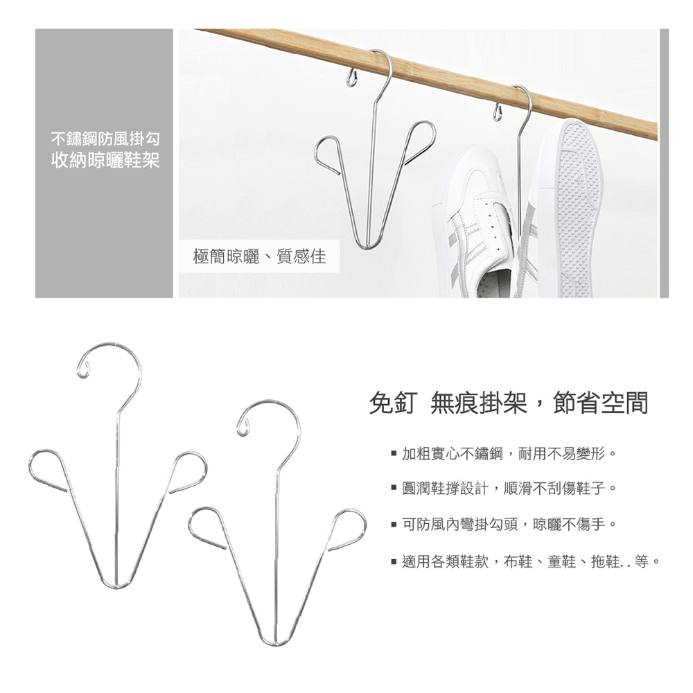《艾克思》不鏽鋼防風掛勾收納晾曬鞋架