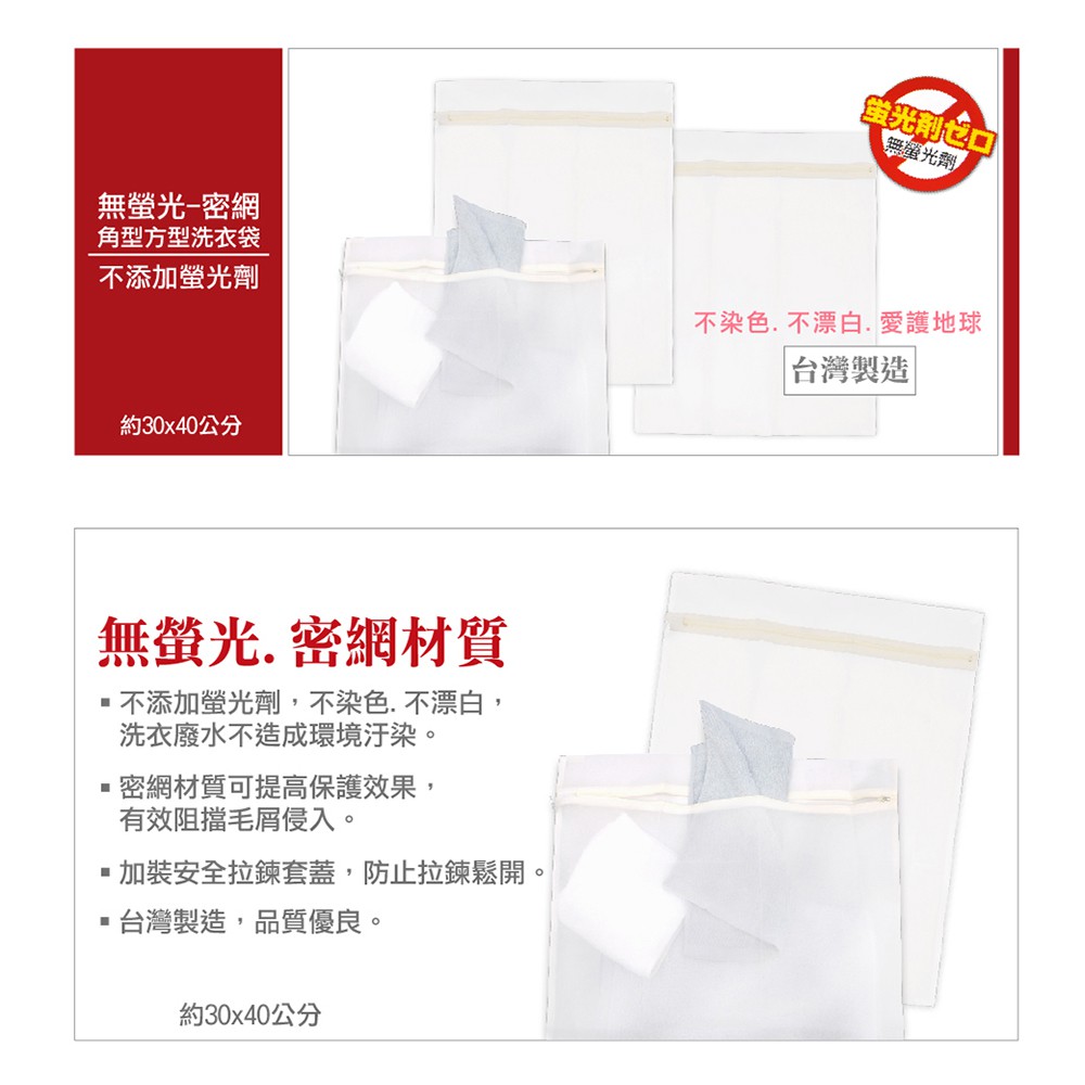 《艾克思》無螢光密網角型方型洗衣袋(30x40cm)_3入