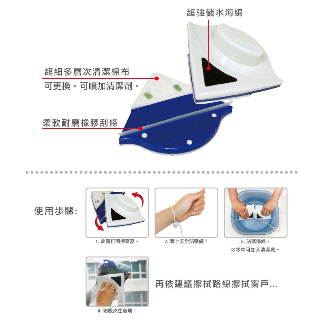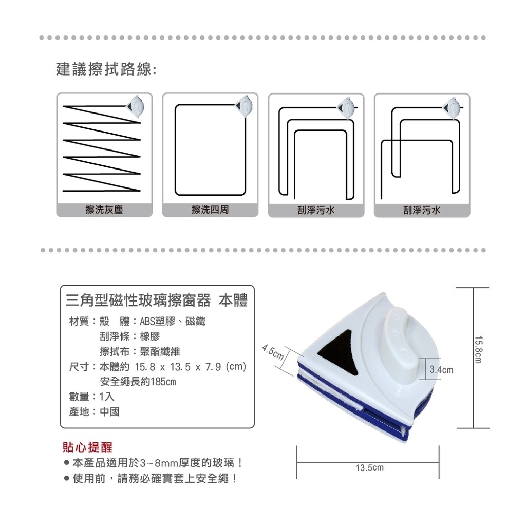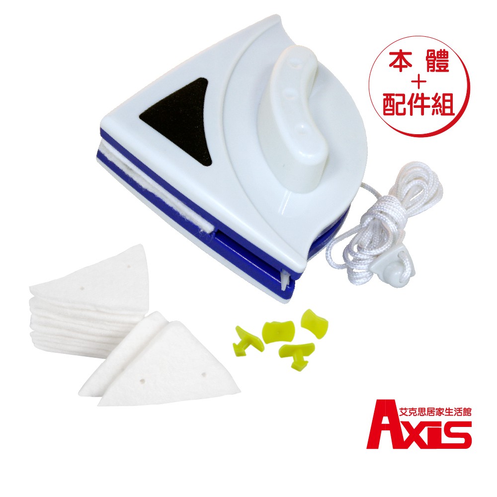 《艾克思》三角型磁性玻璃擦窗器+配件組(清潔棉布8片/固定扣16個)