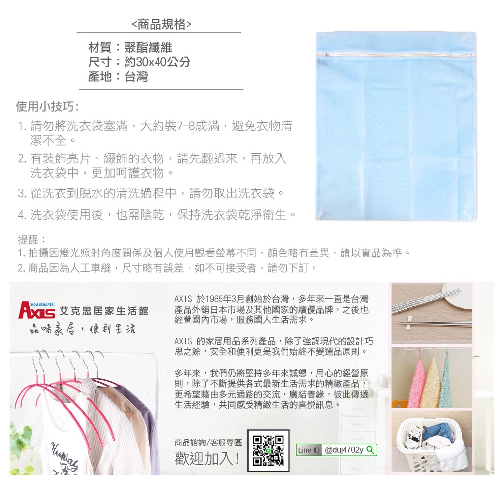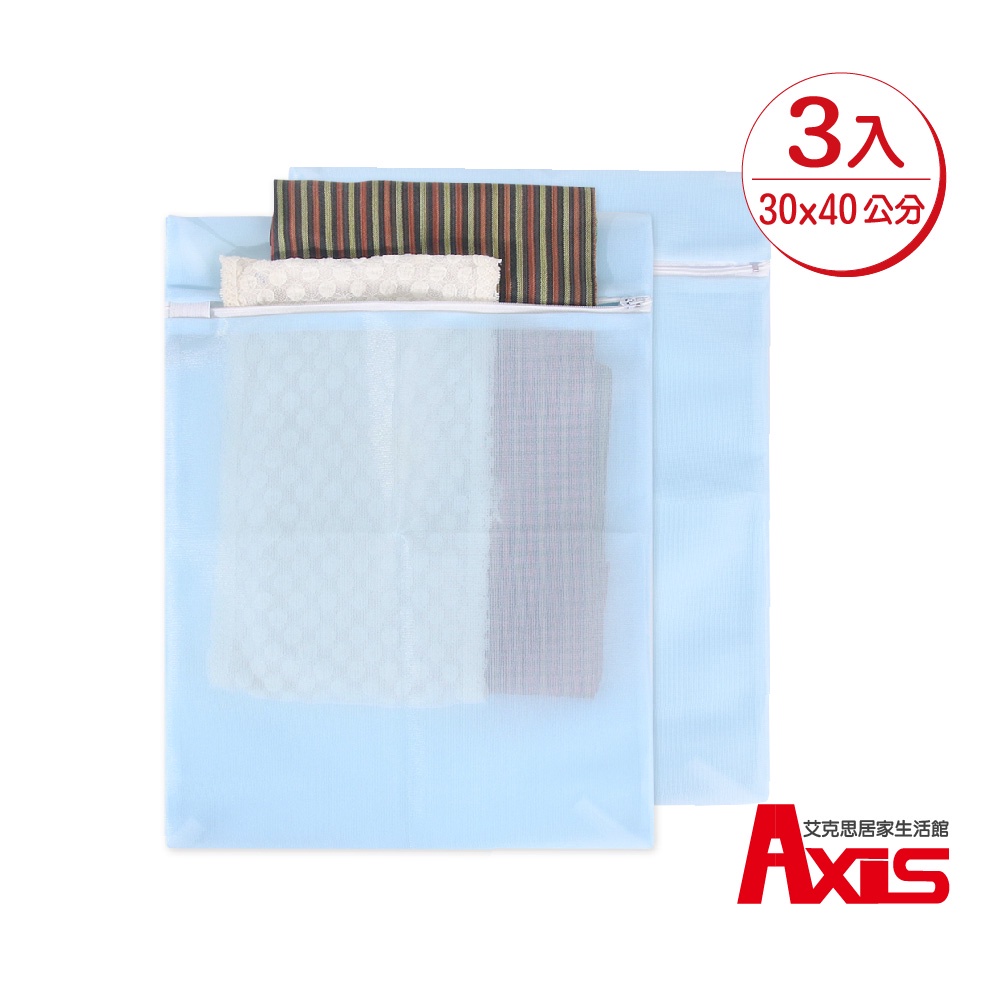 《艾克思》台灣製天藍色方形30x40cm細密網洗衣袋.衣物收納袋