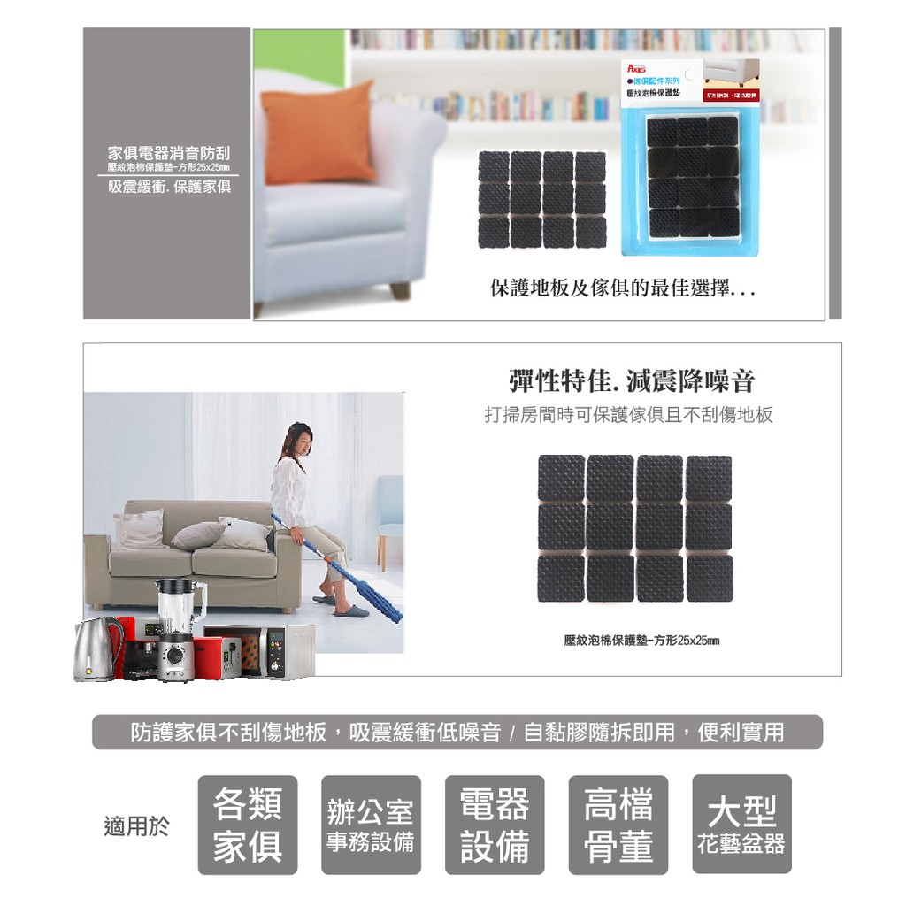 《艾克思》家具電器消音防刮壓紋泡棉保護腳墊-方形25x25mm