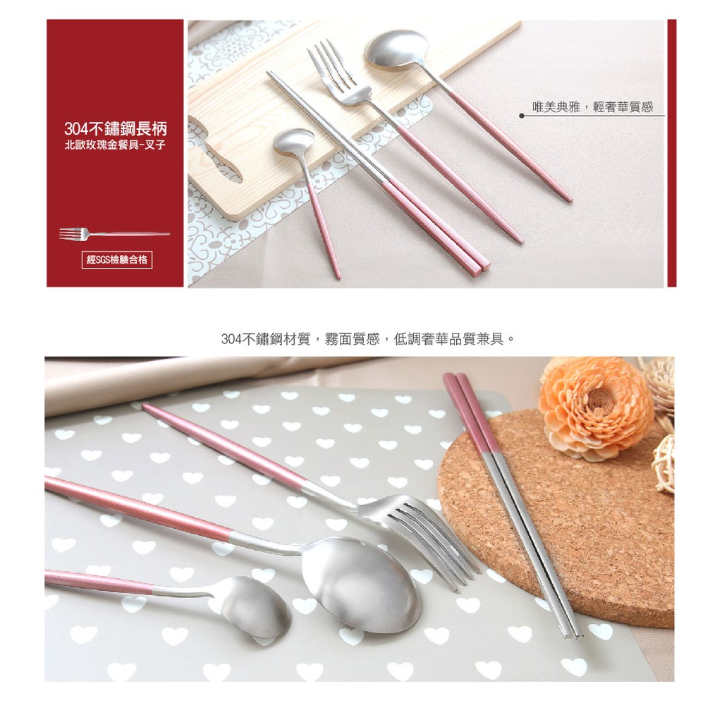《艾克思》304不鏽鋼長柄北歐玫瑰金餐具-叉子