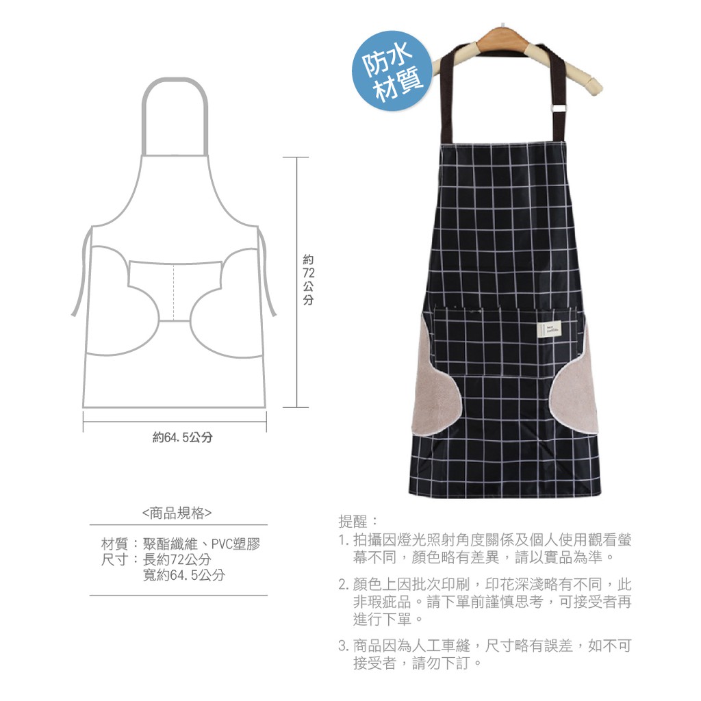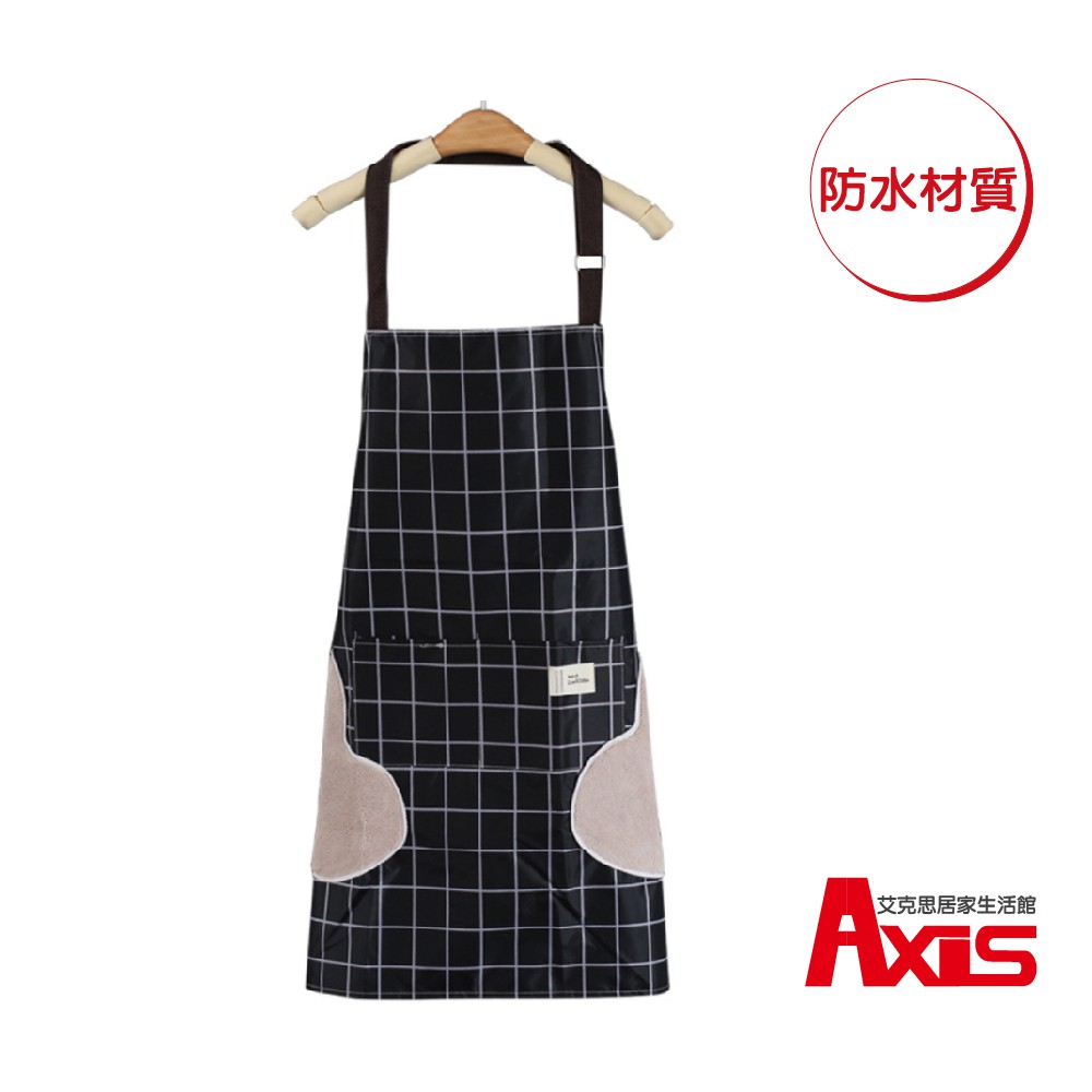 《艾克思》防水防汙可擦手簡約黑格工作圍裙