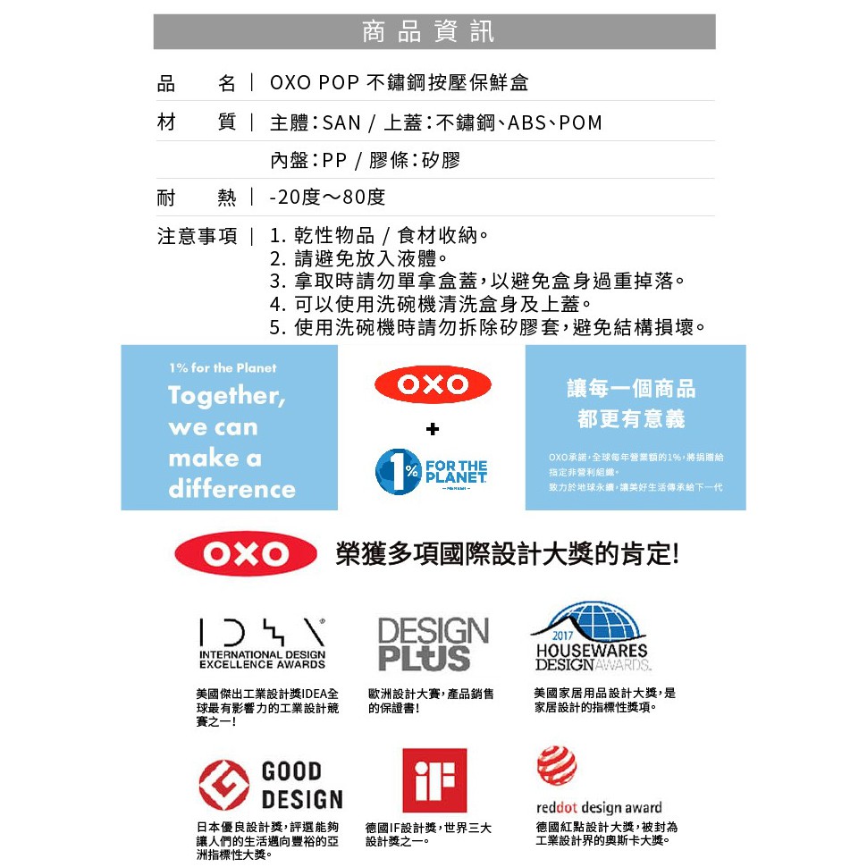 美國【OXO】福利品 POP不鏽鋼按壓保鮮盒(一指開關/食材收納)【限量福利品】