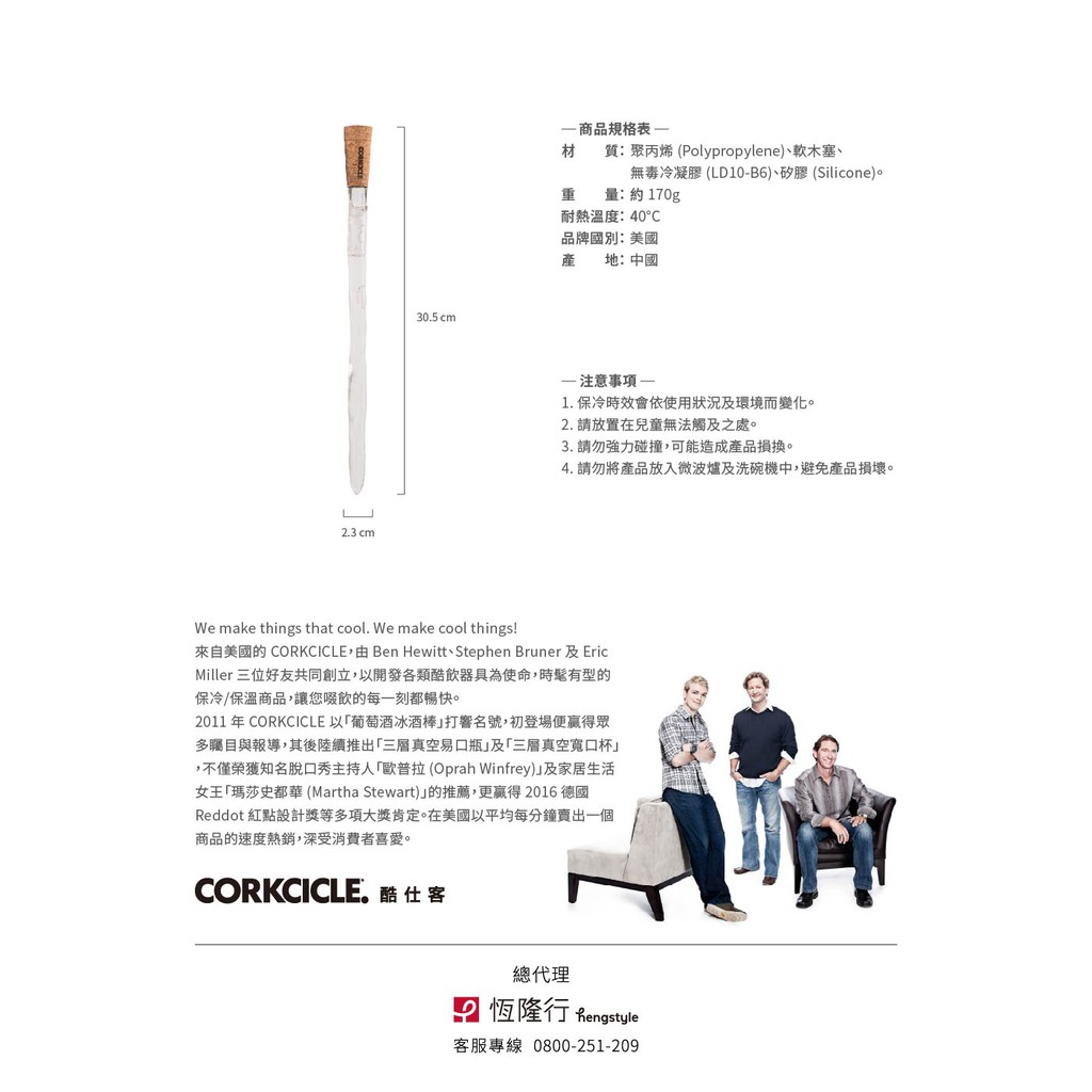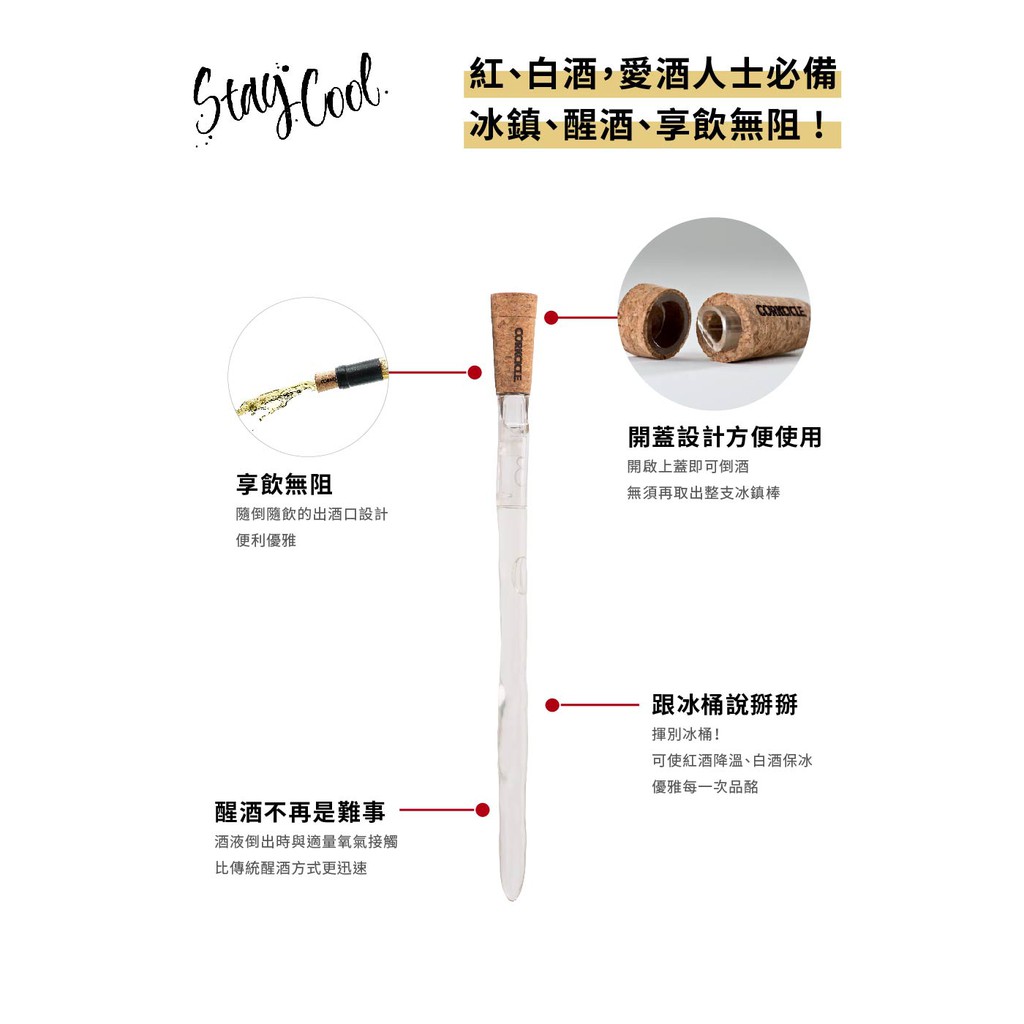 【CORKCICLE 酷仕客】葡萄酒冰鎮醒酒棒 原廠公司貨(限量福利品)