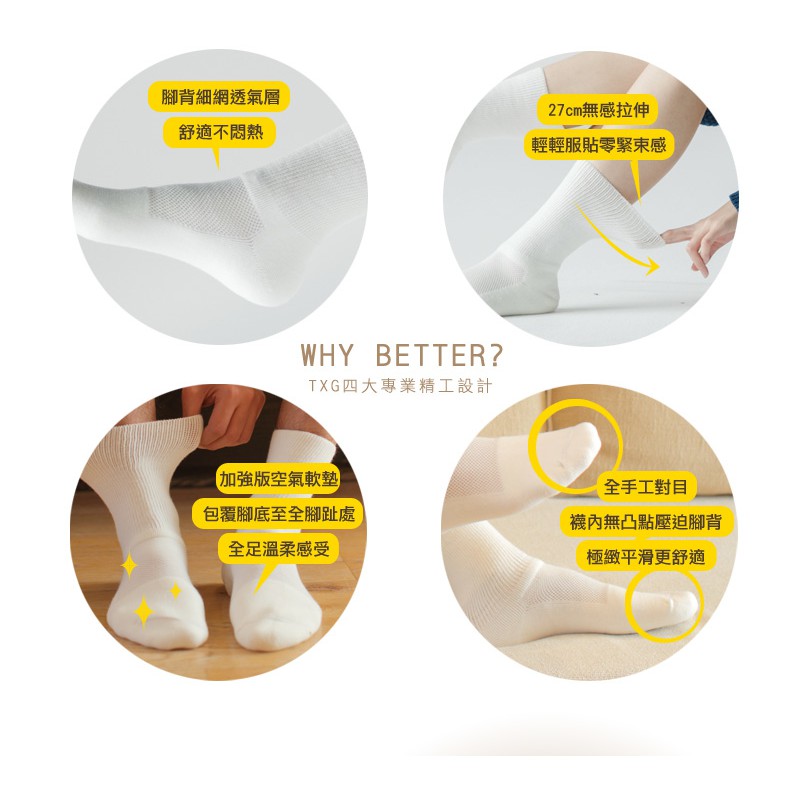 TXG 機能護足襪 (3 雙入)無縫氣墊襪 寬口零束縛 適合敏感肌與長時間穿著