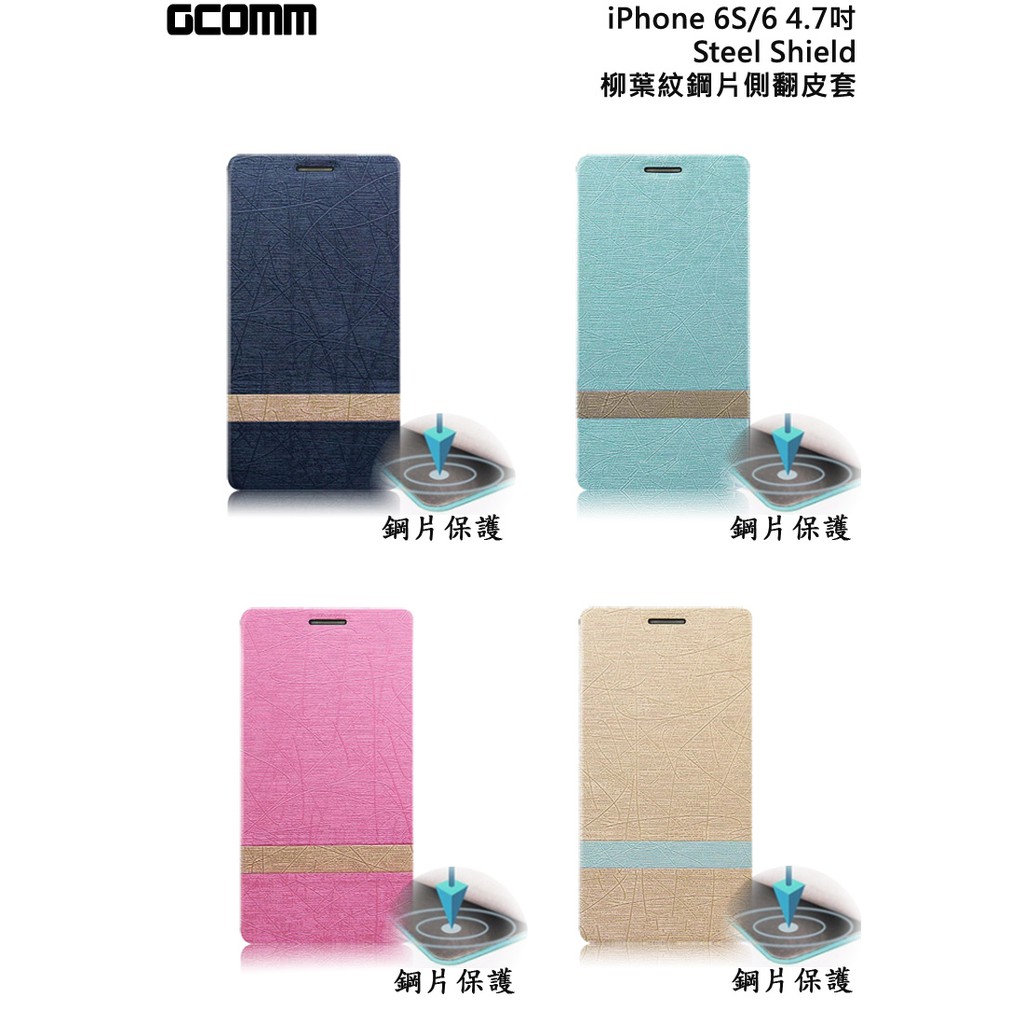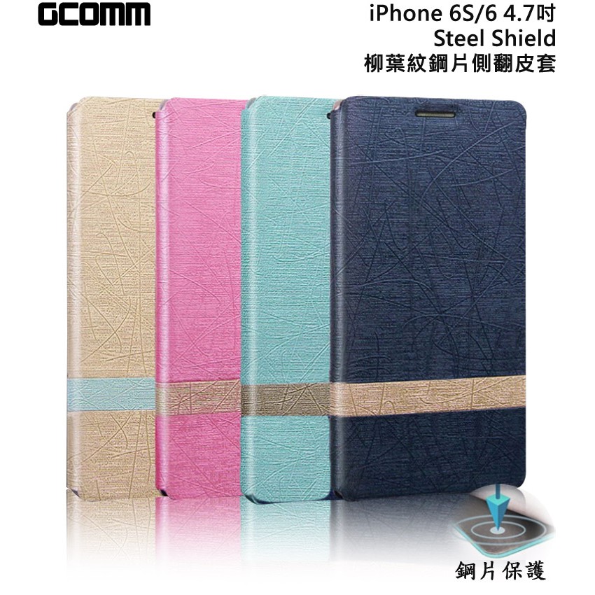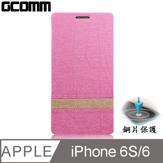 GCOMM iPhone6S/6 4.7吋 Steel Shield 柳葉紋鋼片惻翻皮套 嫩粉紅