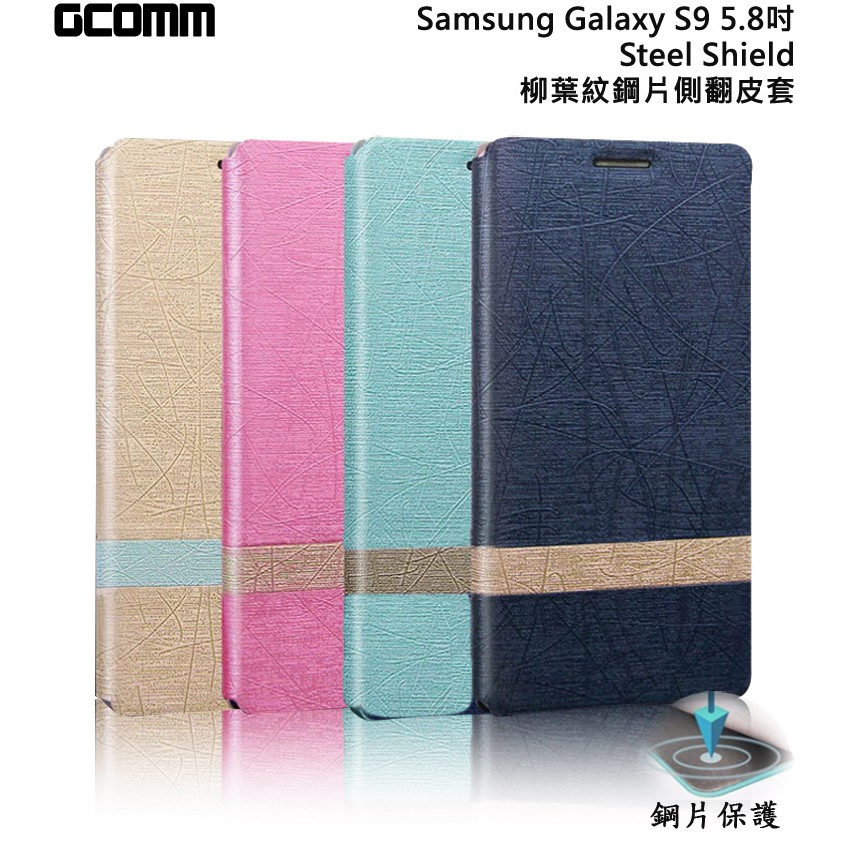 GCOMM Samsung Galaxy S9 柳葉紋鋼片惻翻皮套 優雅藍 Steel Shield