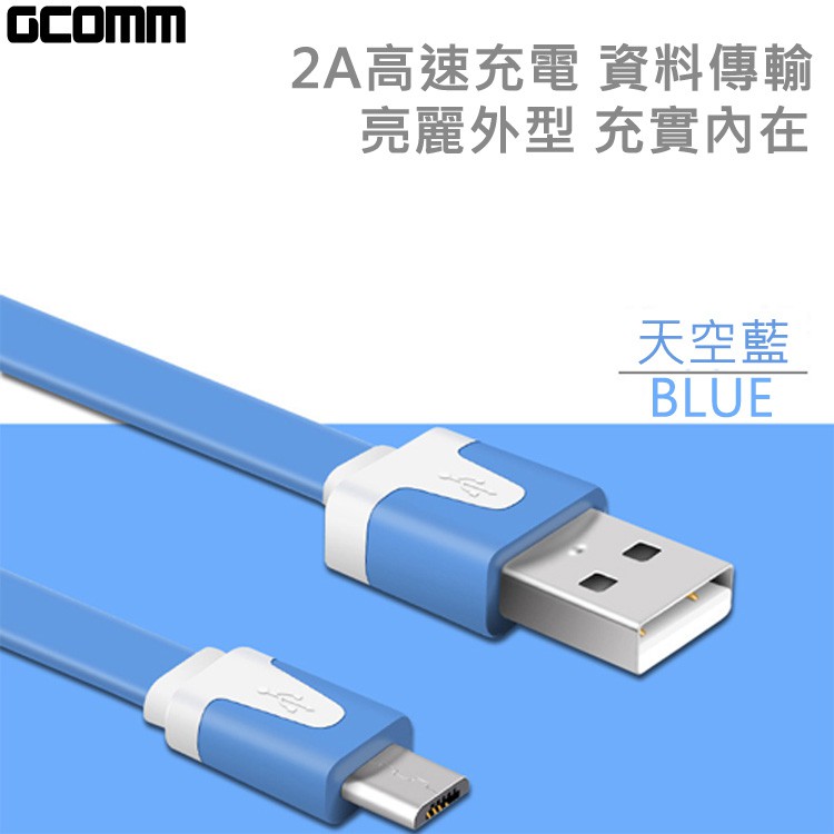 GCOMM micro-USB 彩色繽紛 高速充電傳輸雙色窄扁線 (1米) 清新綠