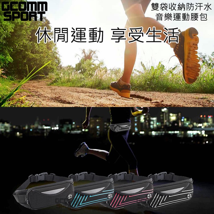GCOMM SPORT 雙袋防汗水音樂運動腰包 經典黑