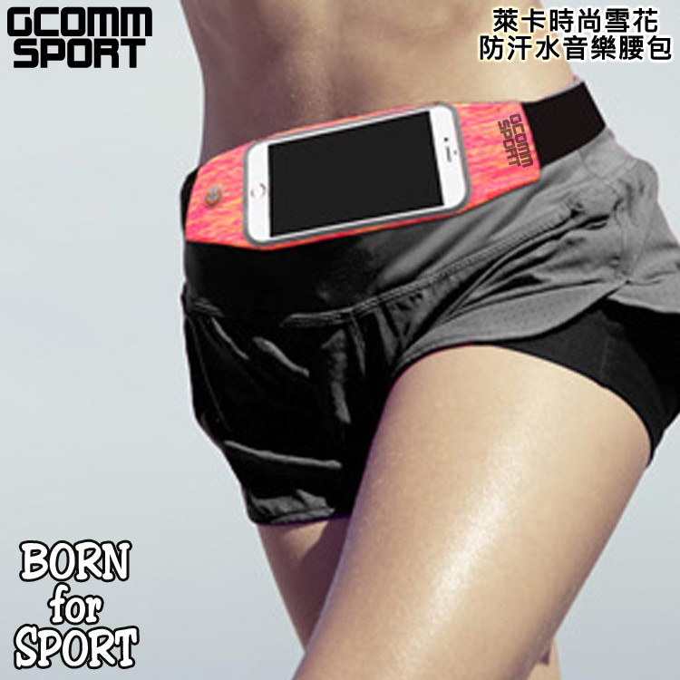 GCOMM SPORT 萊卡時尚雪花防汗水音樂腰包 橙紅雪花
