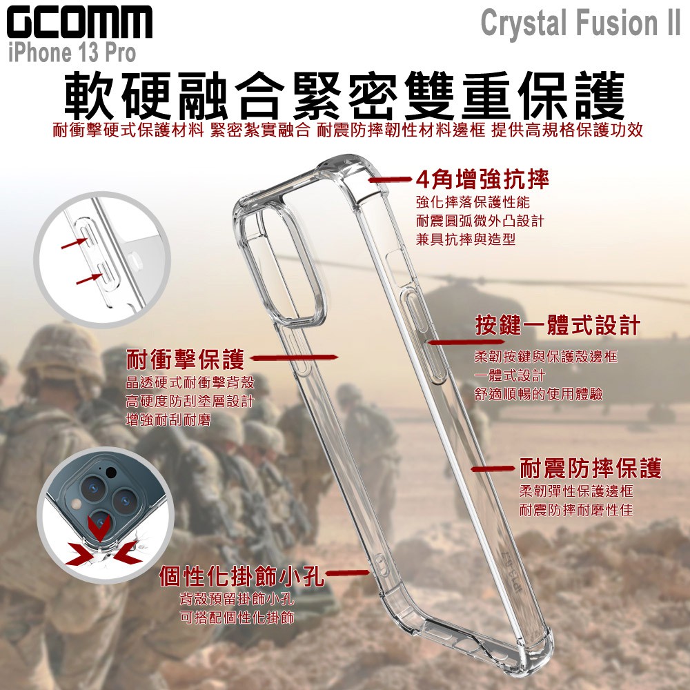 GCOMM iPhone 13 Pro 透明軍規防摔殼 Crystal Fusion II