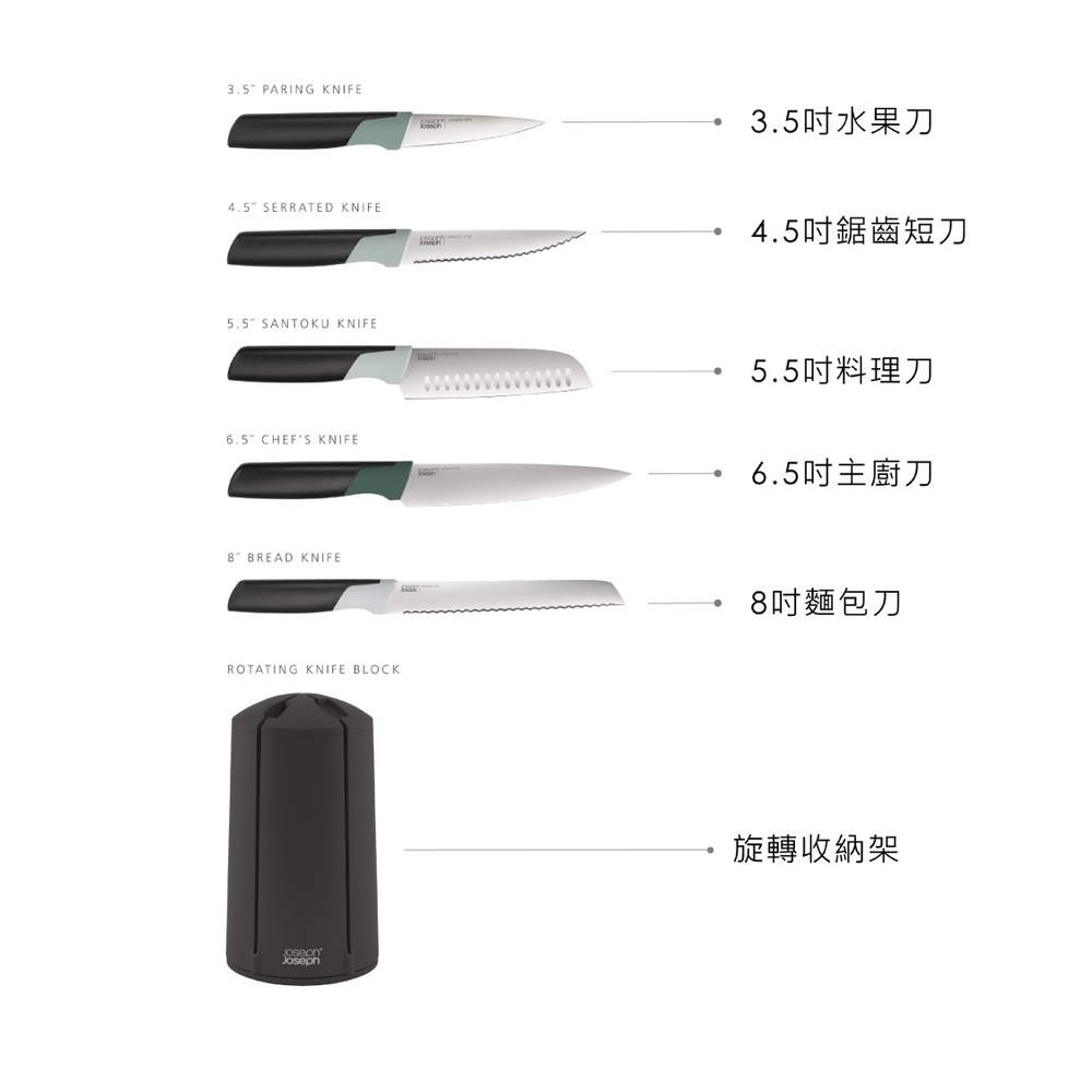 Joseph Joseph 好收納不沾桌不鏽鋼刀具組五入(鼠尾草系列)
