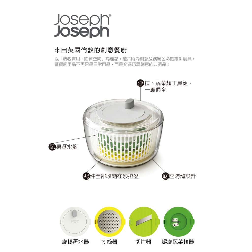 英國Joseph Joseph 多功能沙拉瀝水切絲切片組 福利品