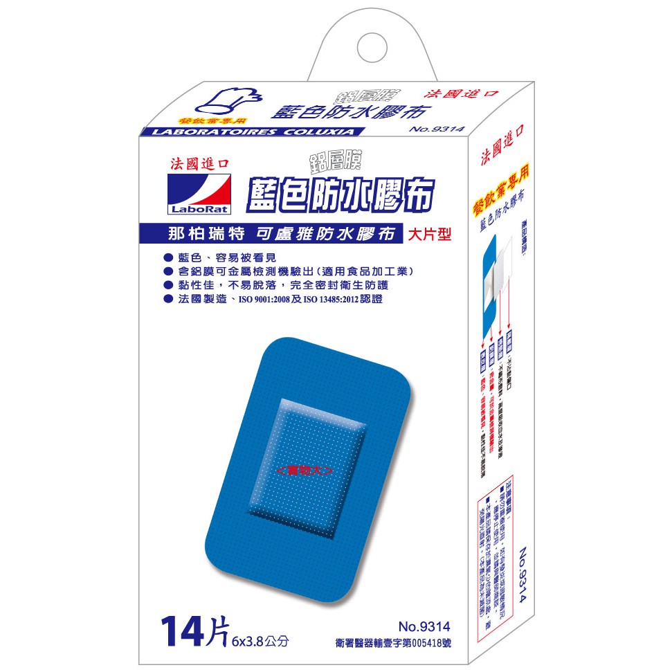 LaboRat那柏瑞特 藍色鋁膜防水膠布(大)14片/盒 6cmx3.8cm