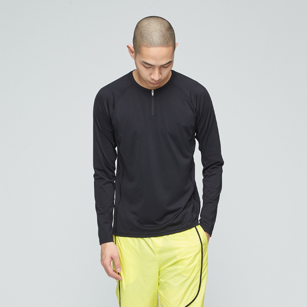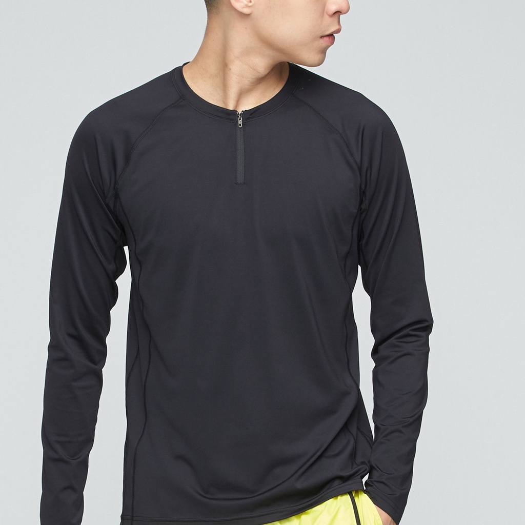 【VOUX】抗菌吸排半襟拉鍊上衣(男)-(膠片黑/金盞花橘M-XL)