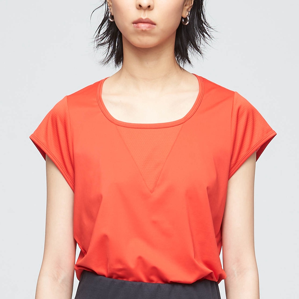 【VOUX】抗菌吸排拼接修身上衣(女) - (膠片黑/石榴紅 S-L)