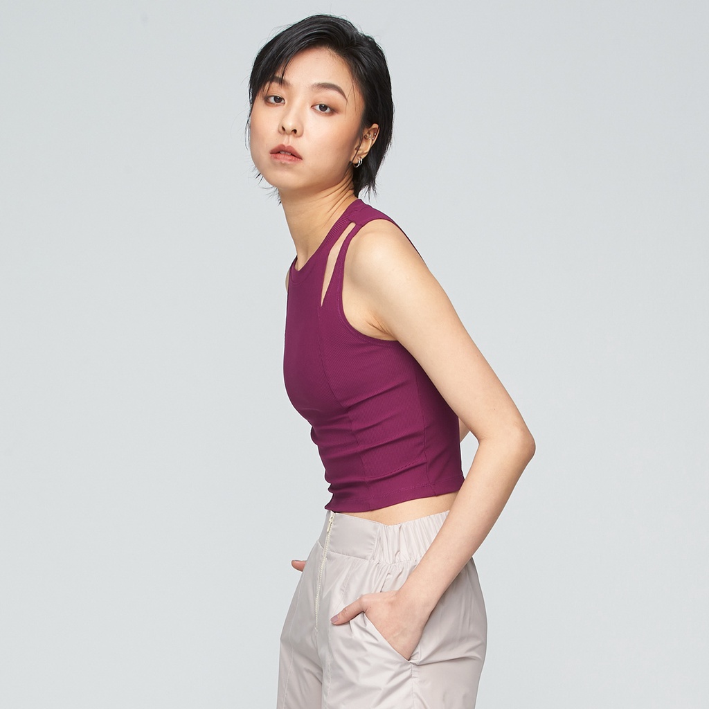【VOUX】Ultracool-涼感鏤空修身背心(女) -(膠片黑/霓虹紫 S-L)