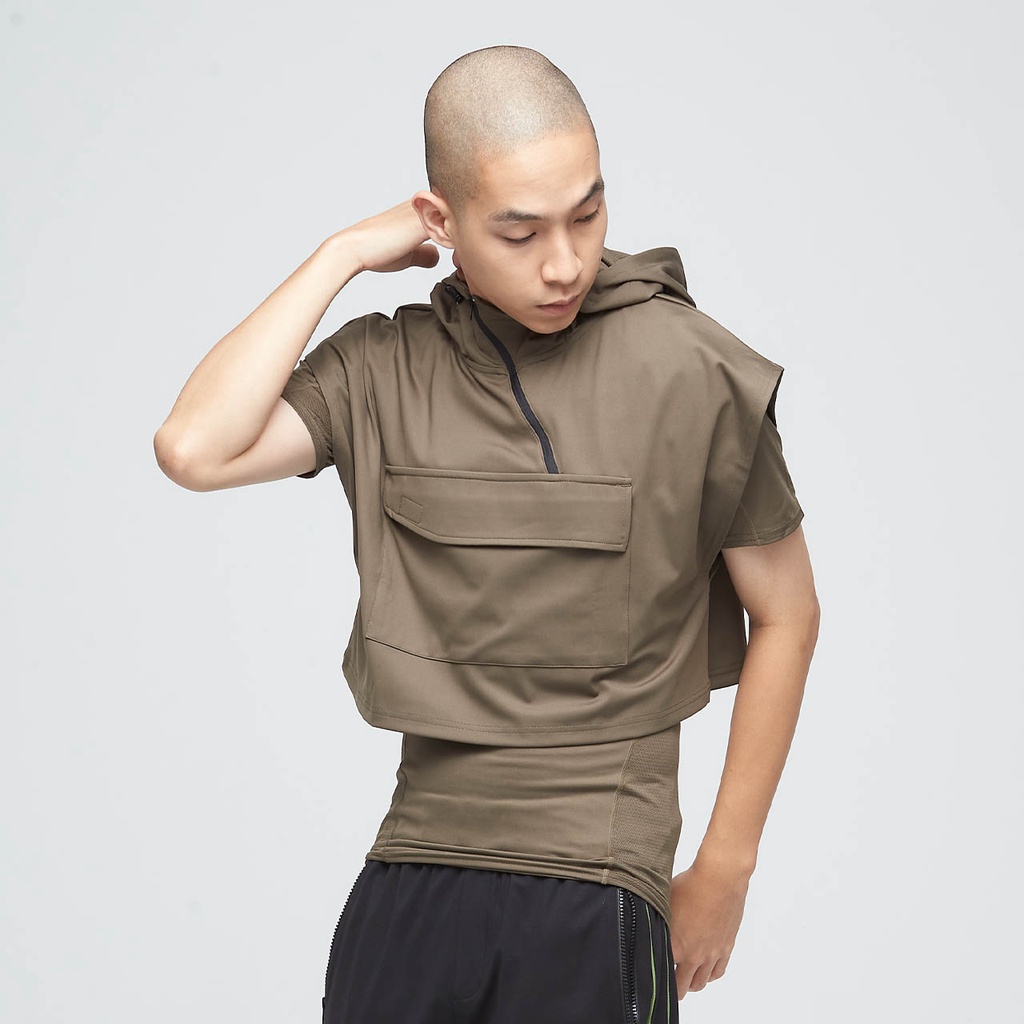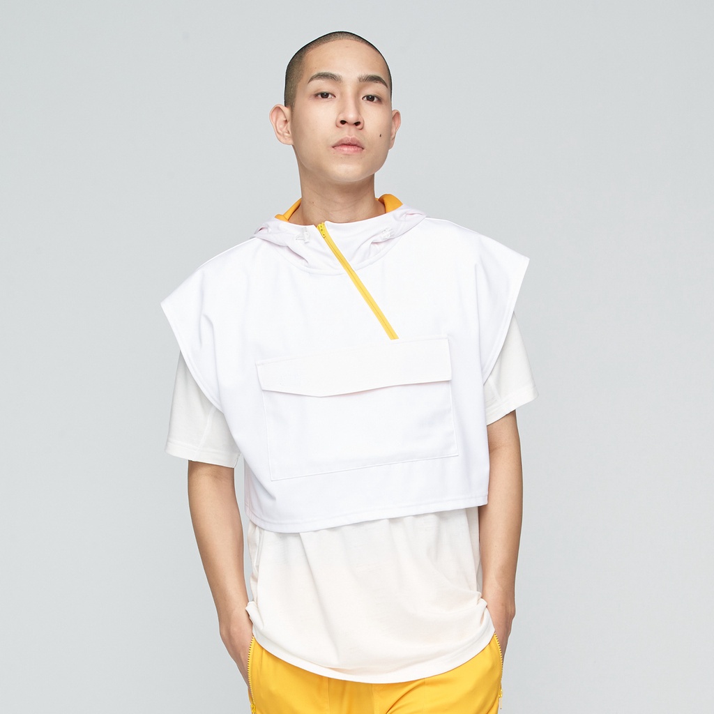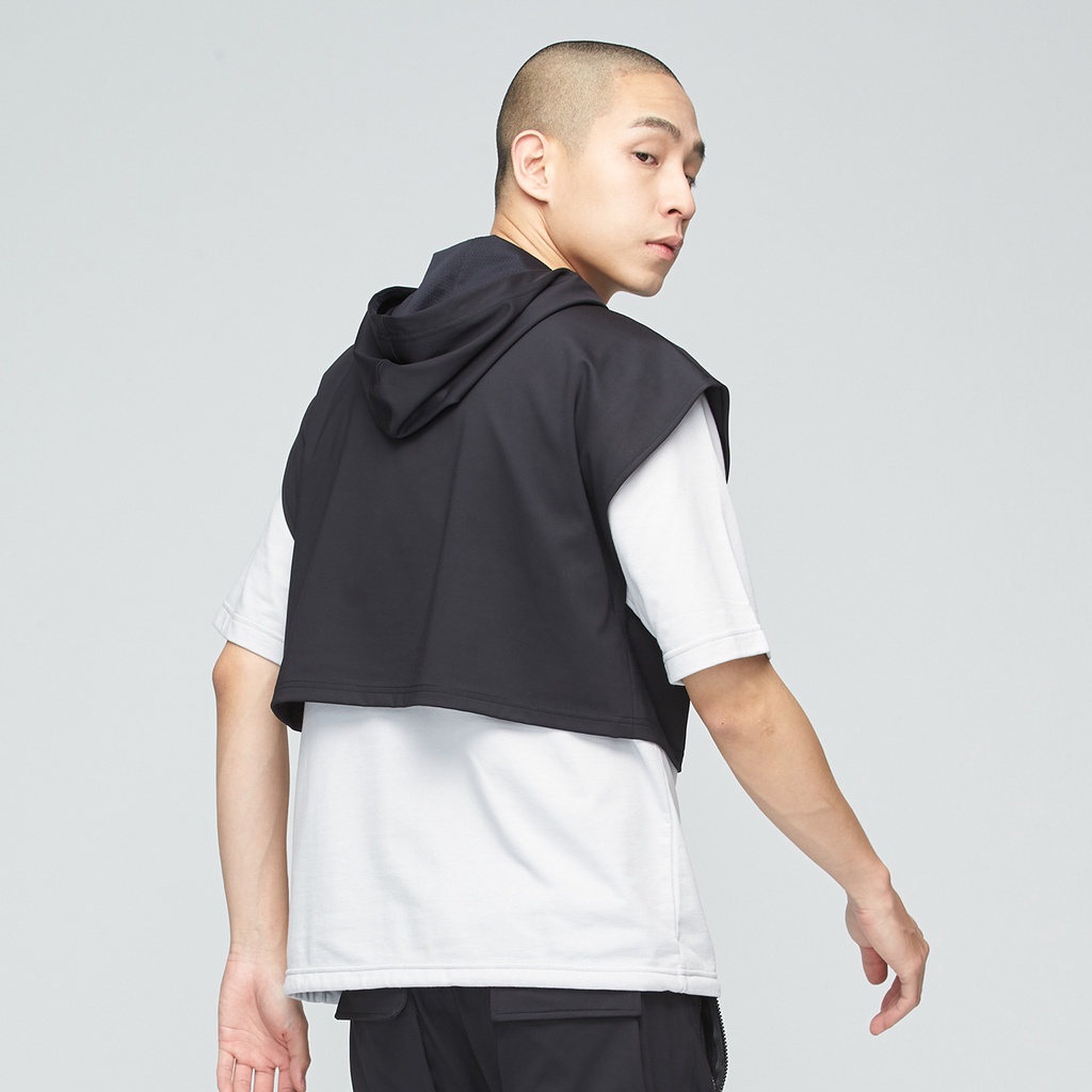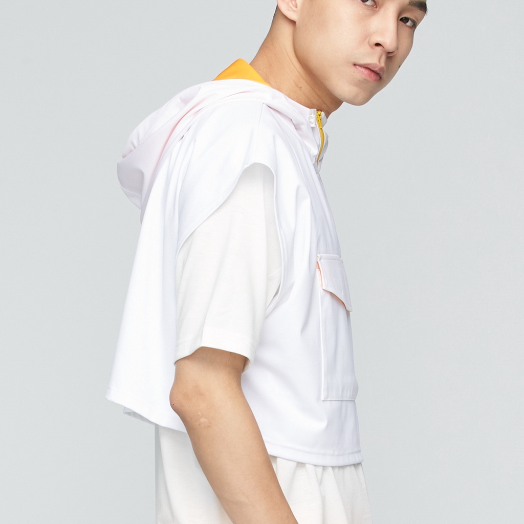 【VOUX】抗菌吸排短版連帽背心(中性)(膠片黑/量子白/金盞花橘/瓦綠M-L)