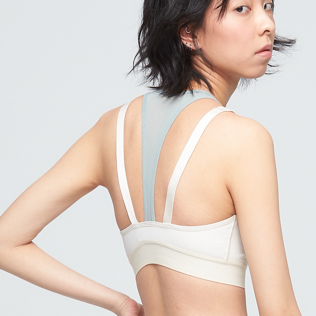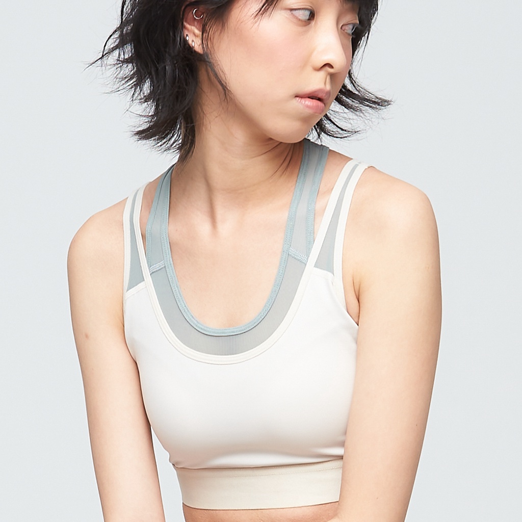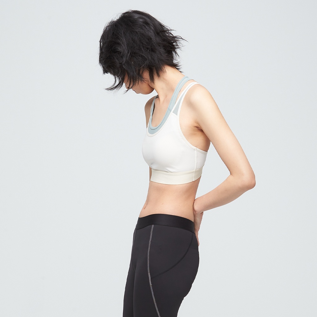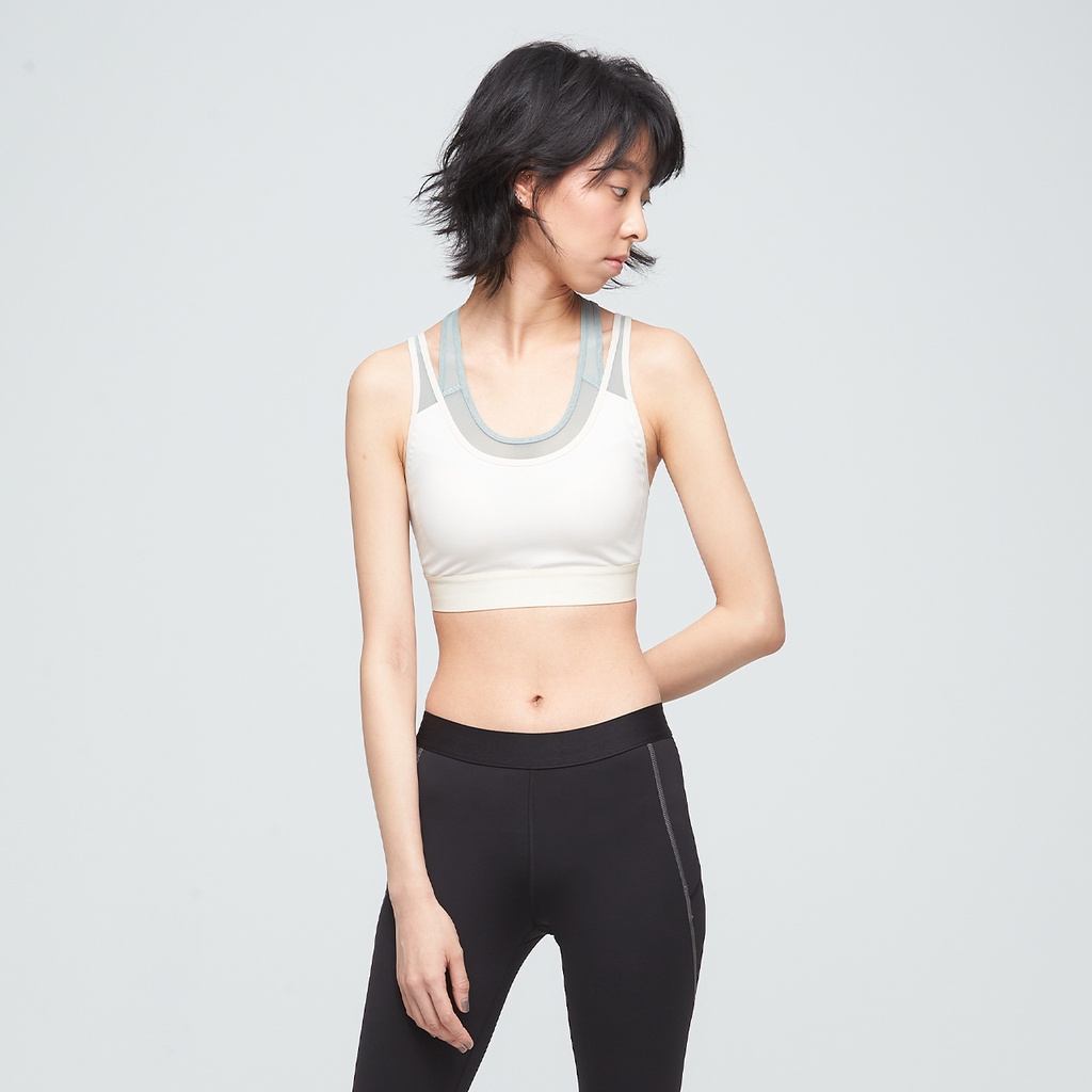 【VOUX】抗菌高彈雙層紗網運動內衣(女)-(白樺木/無煙煤黑)