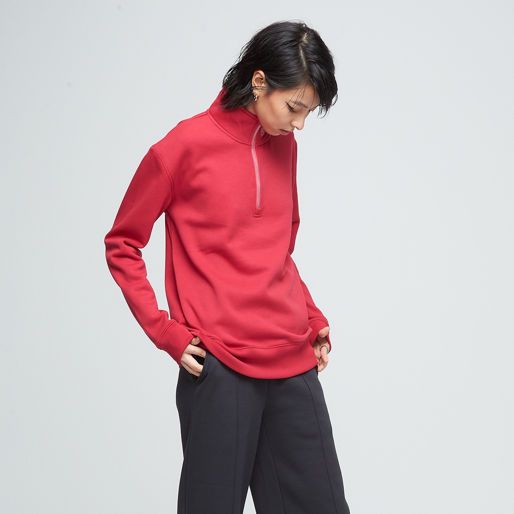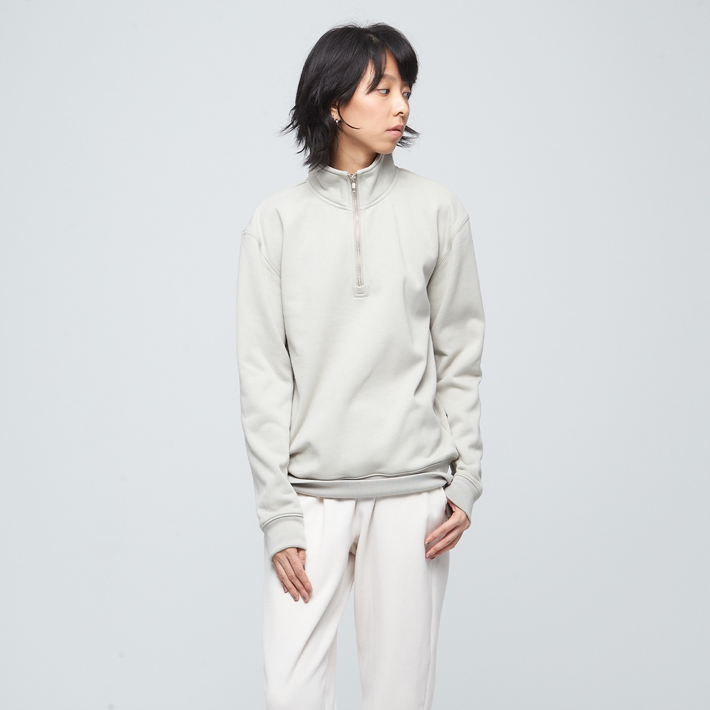 【VOUX】抗菌立領拉鍊開襟長袖上衣(中性)-(灰毛柳/石墨黑/仙人掌綠/波斯紅)
