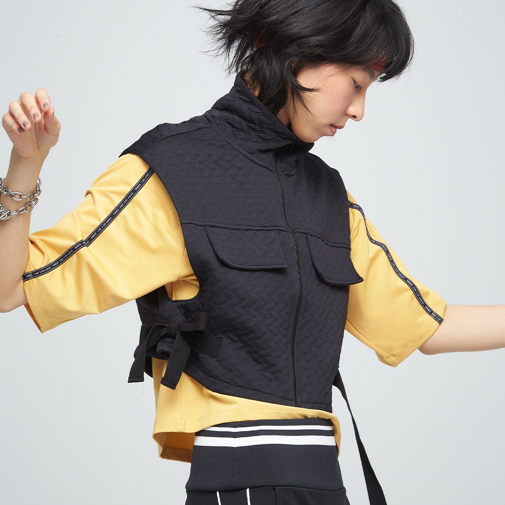 【VOUX】Cozee-抗菌高領線性緹花背心(女)-(無煙煤黑/白樺木)