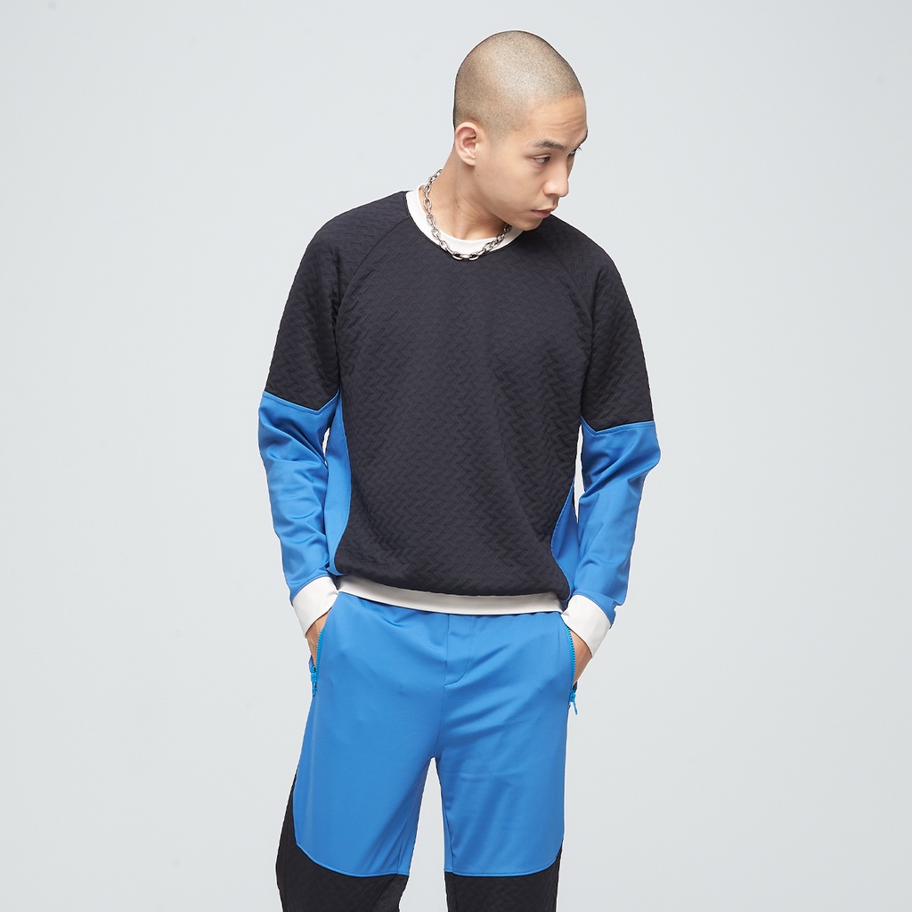 【VOUX】Cozee-線性緹花拼接鋪棉衛衣(男)-寶石藍/菸草棕