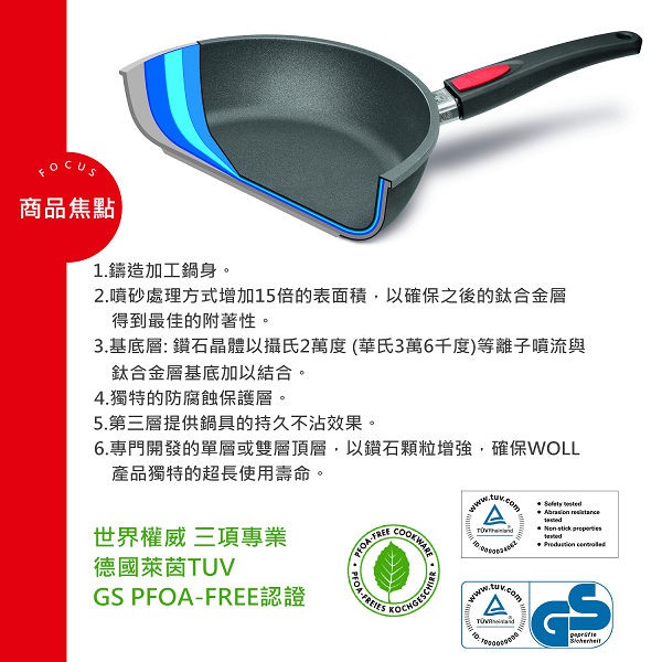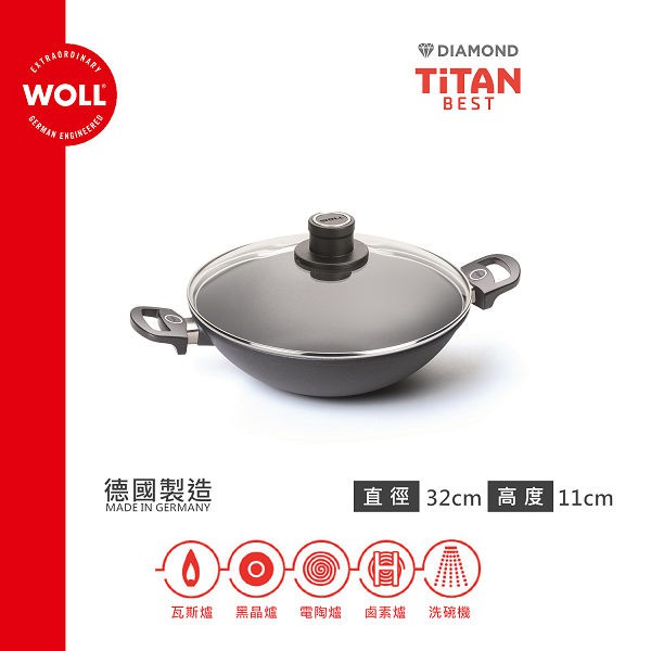 《WOLL》德國歐爾-鈦鑽 32cm鑄造不沾中華鍋