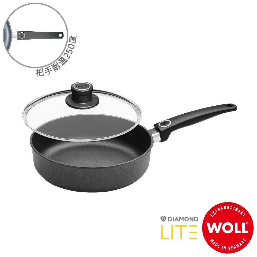《WOLL》德國歐爾 DIAMOND LITE新鑽石 24cm鑄造不沾平底鍋(附安全玻璃蓋)掌廚公司貨