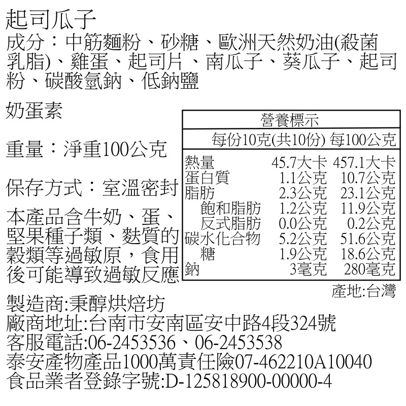 【秉醇烘焙坊 】起司瓜子 手工餅乾 鹹香餅乾 起司餅乾 薄脆餅乾回購冠軍 伴手禮 節慶 生日 台南點心下午茶點心