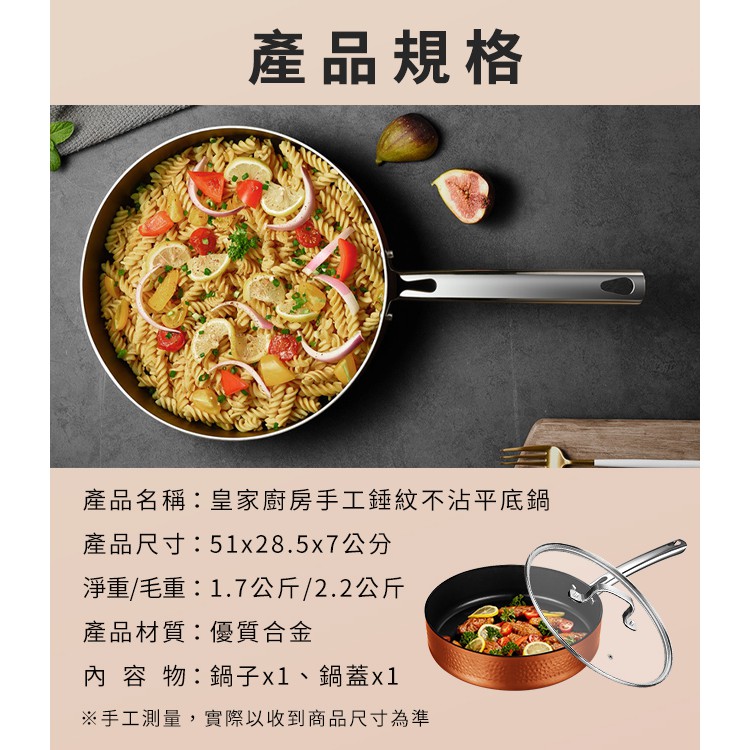 皇家廚房手工錘紋銅色不沾平底牛排鍋(K0138)
