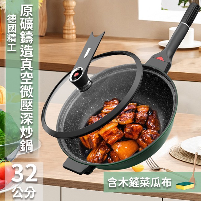 德國精工技術原礦鑄造真空微壓深炒鍋32公分含蓋(K0128)/微壓鍋/悶燒鍋/氣閥壓力鍋