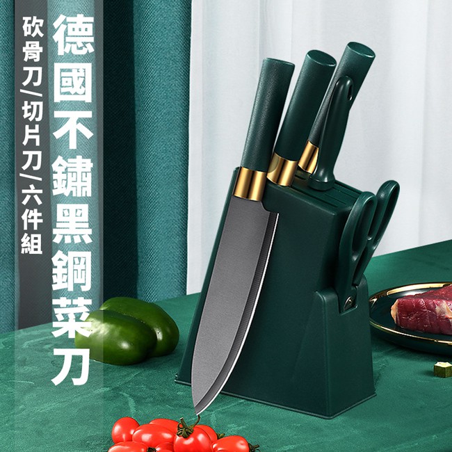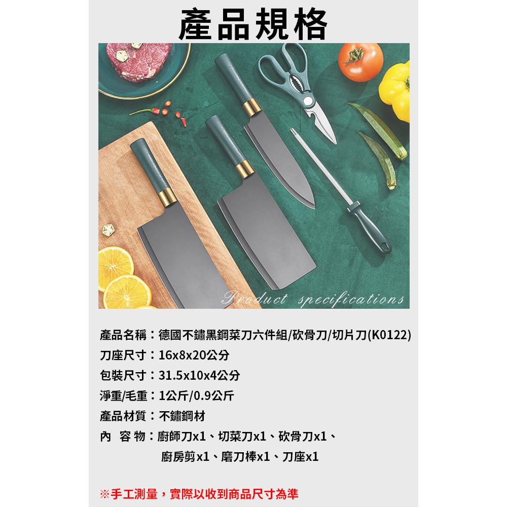 不鏽鋼黑鋼菜刀六件組/砍骨刀/切片刀(K0122)不鏽鋼刀/菜刀/刀具/刀子