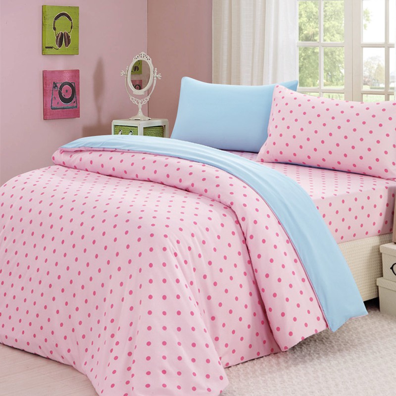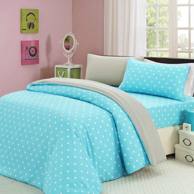 MIT-吸濕排汗專利點點雙人三件式床包組 -淺藍圓點+淺灰