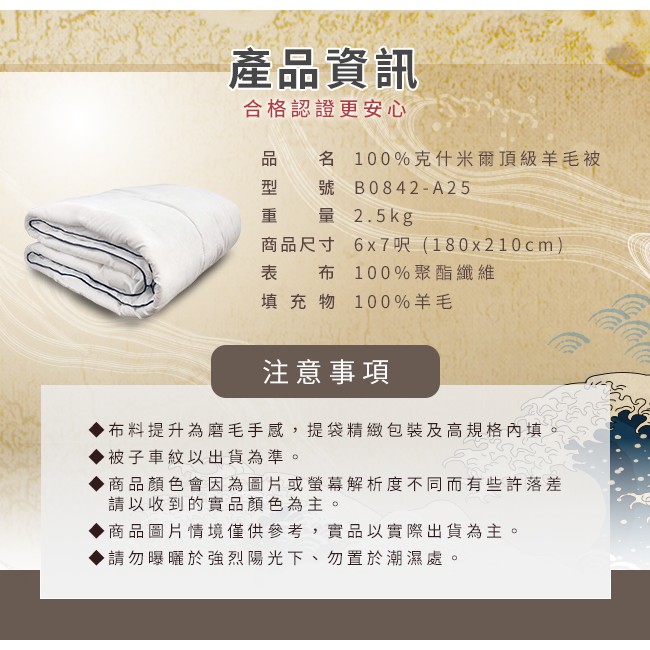 三浦太郎-頂級100%喀什米爾2.5KG羊毛被(B0842)/被子/棉被/被胎/冬被/保暖被