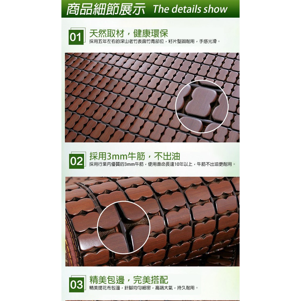 天然頂級冰川碳化楠竹3D雙人透氣麻將蓆