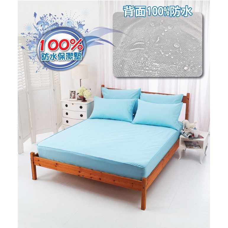 台灣製特級專利看護級100%防水網孔透氣雙人床包式保潔墊/藍