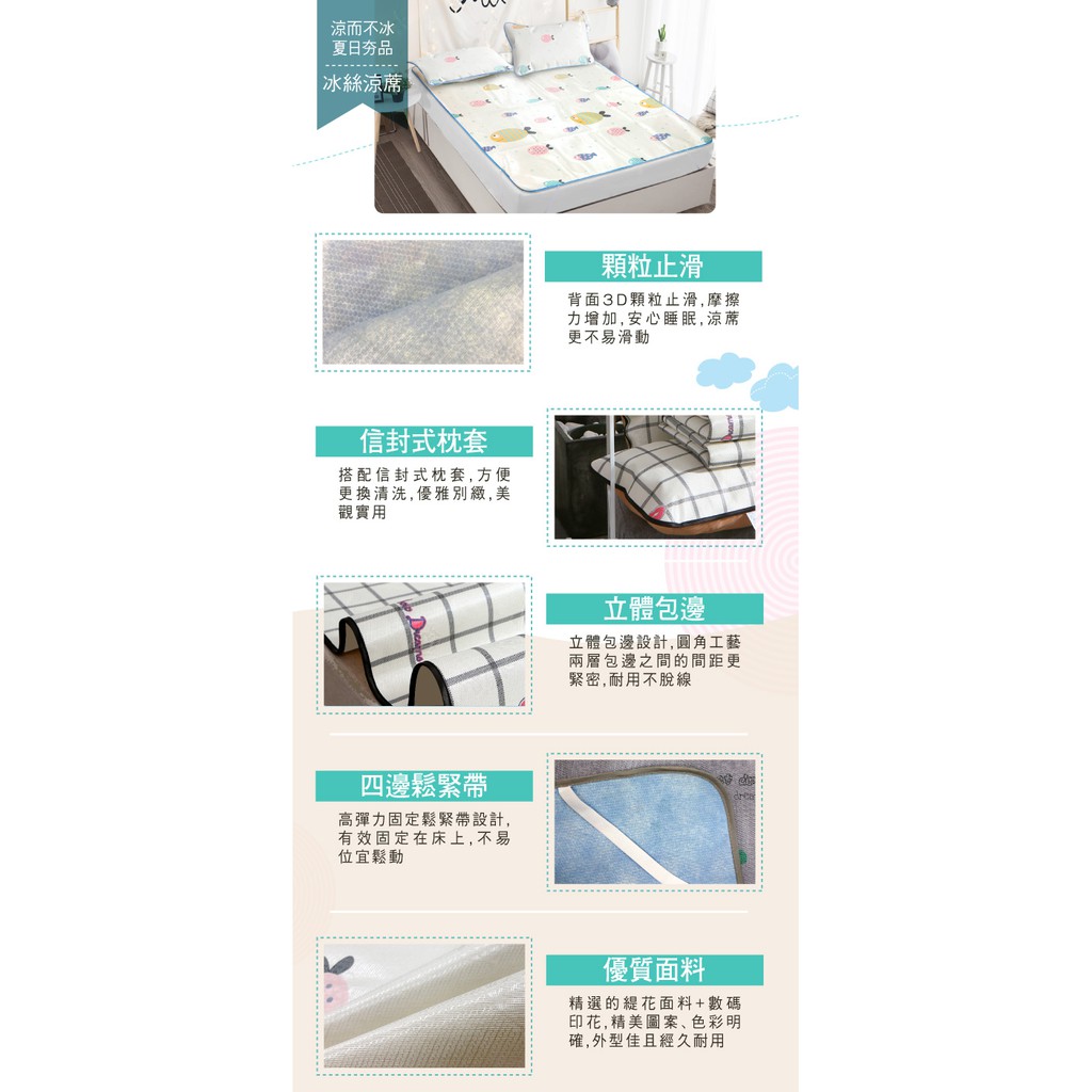 涼感天然木漿雙絲光雙人三件式冰絲涼蓆福利品 B0090 4款任選 涼蓆 冰涼蓆 平單式 平單涼蓆 透氣 涼爽