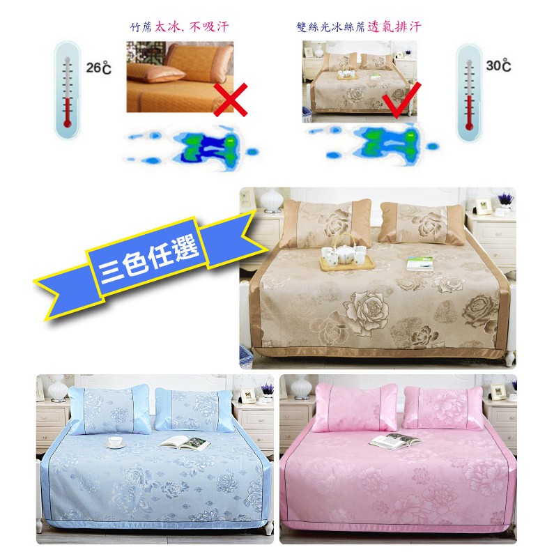 超涼爽透氣雙人三件式冰絲涼蓆花色隨機/款式眾多不挑款(B0123)/涼蓆/冰涼蓆/平單式/平單涼蓆/透氣/涼爽/