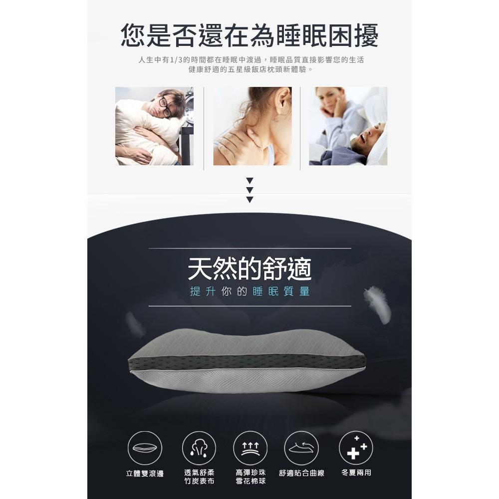 【Hilton 希爾頓】五星級御用竹炭4D透氣雪花枕(B0952-S)