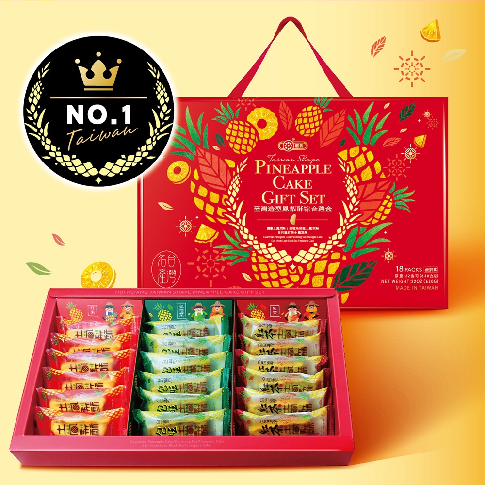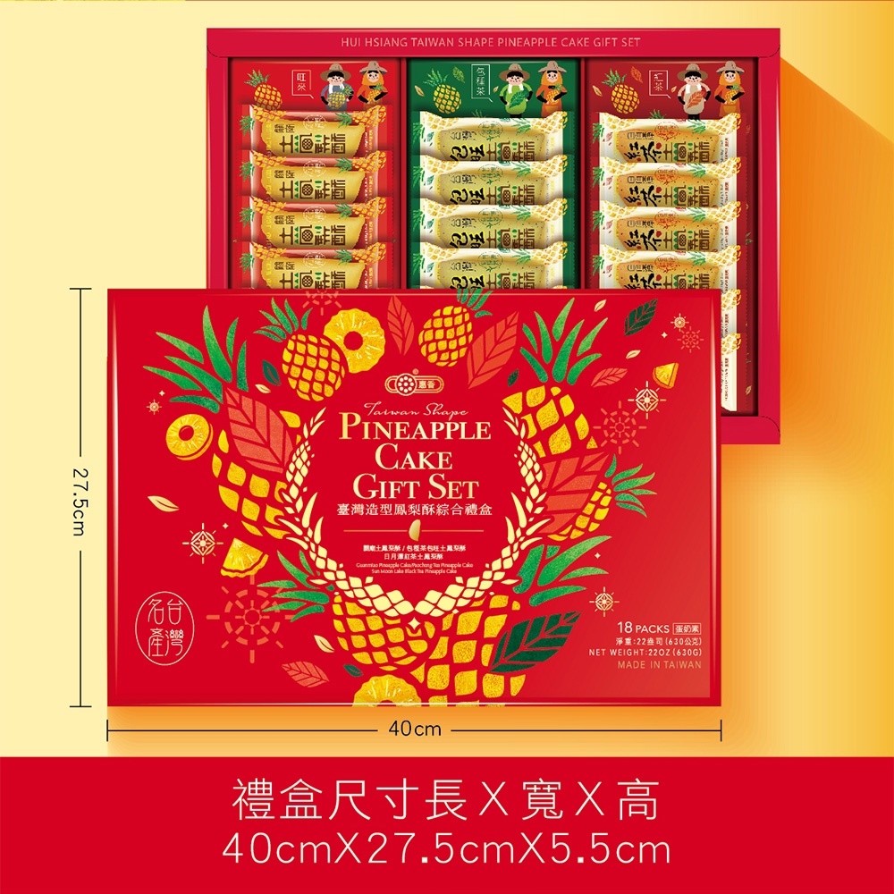 【惠香】台灣造型鳳梨酥綜合禮盒(包種茶、日月潭紅茶、關廟土鳳梨酥禮盒三種口味各6顆)-中秋月餅 年節禮盒 中秋禮盒