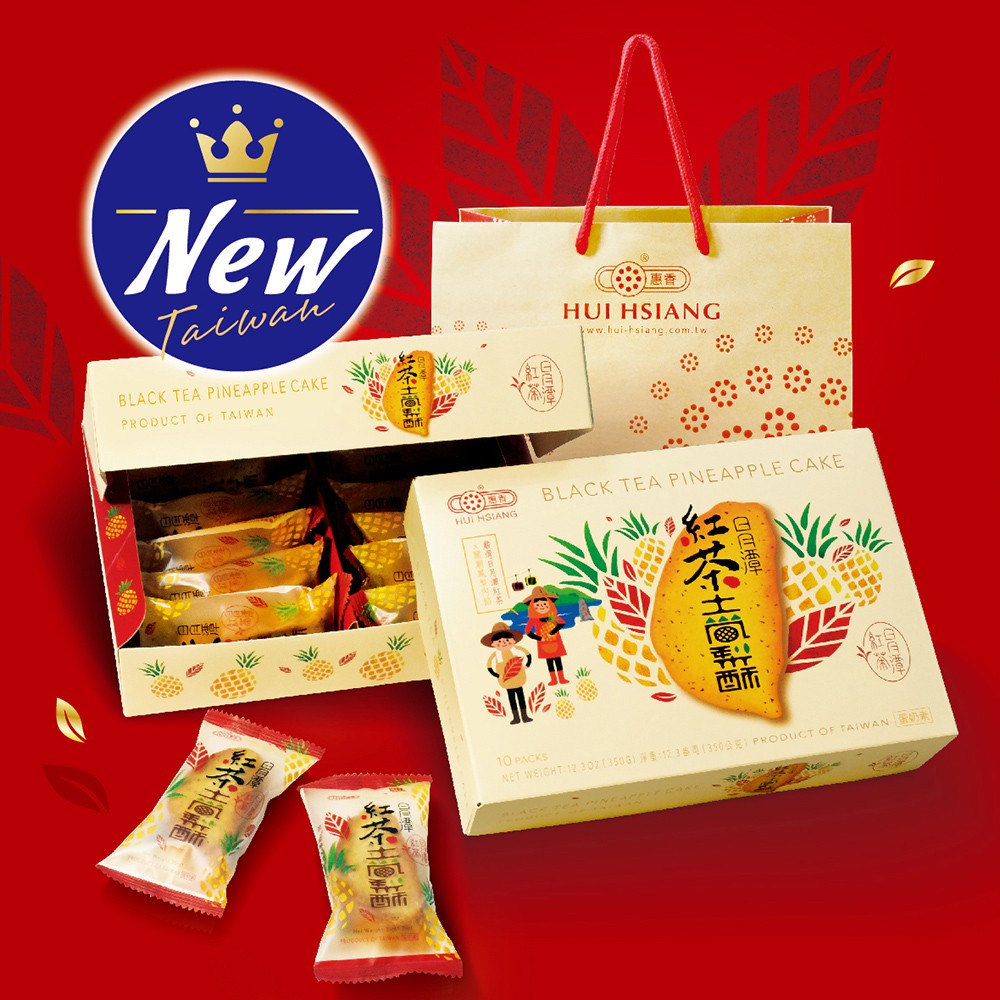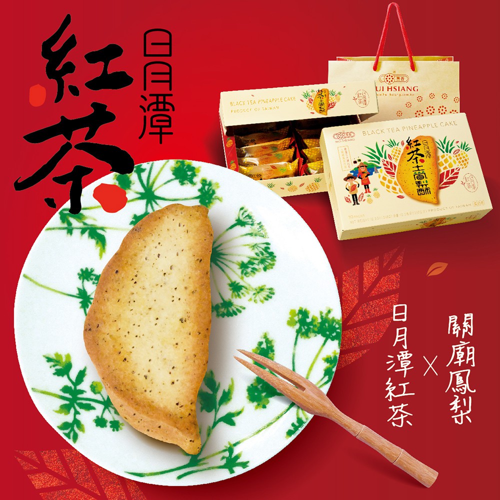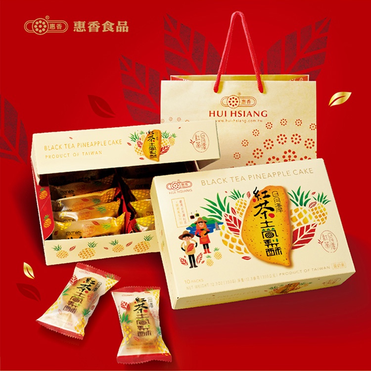 【惠香】臺灣造型日月潭紅茶土鳳梨酥禮盒350g(10顆入附提袋) 中秋月餅中秋禮盒 年節禮盒 台灣鳳梨酥 台灣形狀鳳梨酥