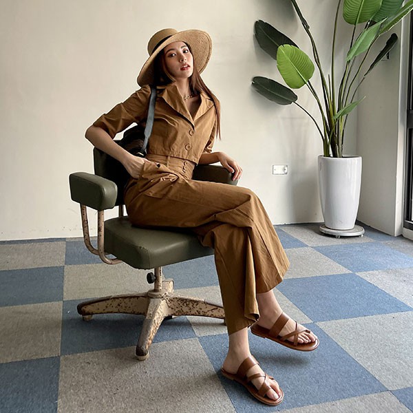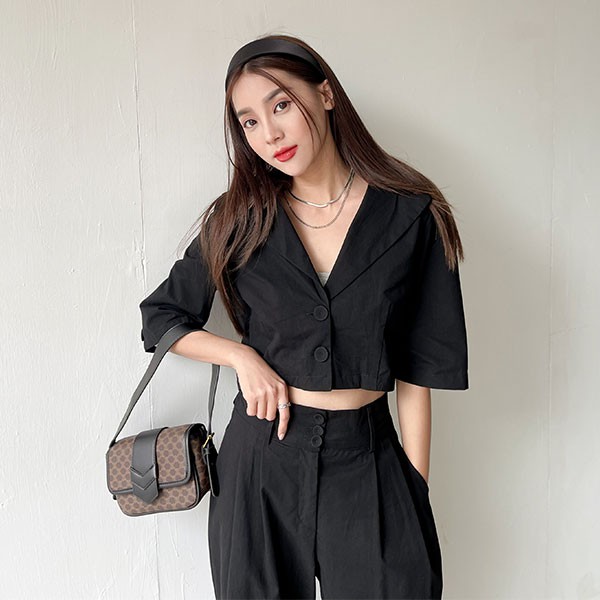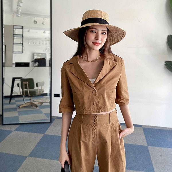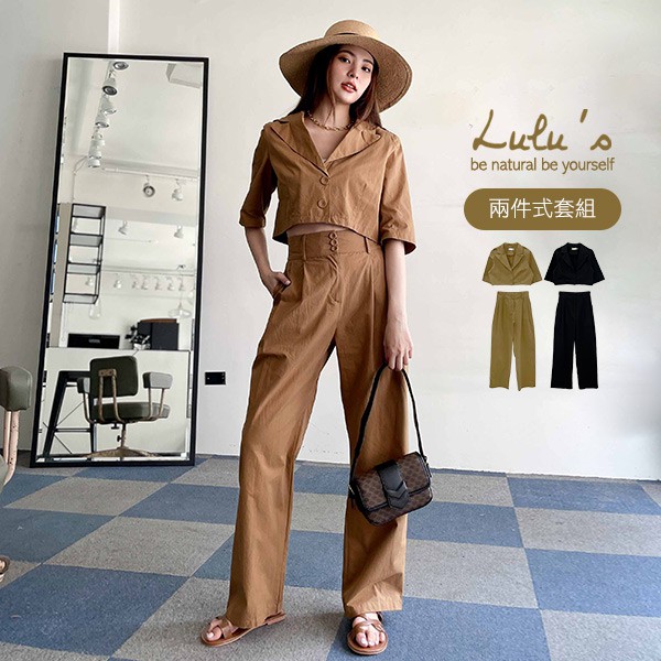 LULUS【A01210307】Y兩件式-翻領上衣+排釦長褲2色0708