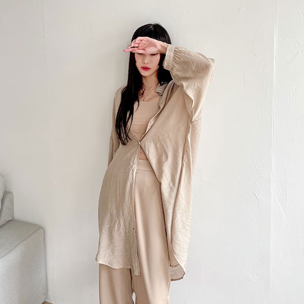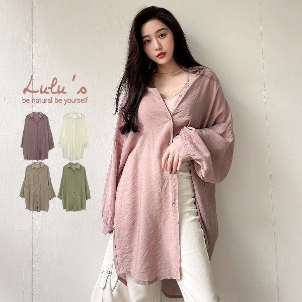 LULUS【A01210571】D光澤釦素面長版襯衫4色0805