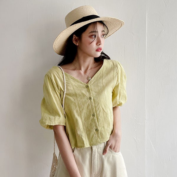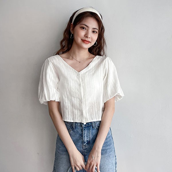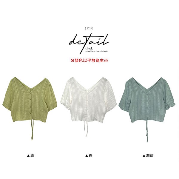 LULUS【A01210577】Y排釦抽繩兩穿澎袖上衣3色0729