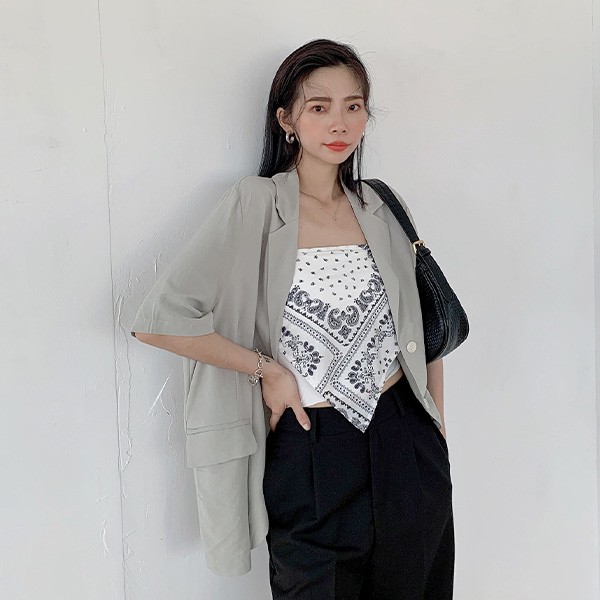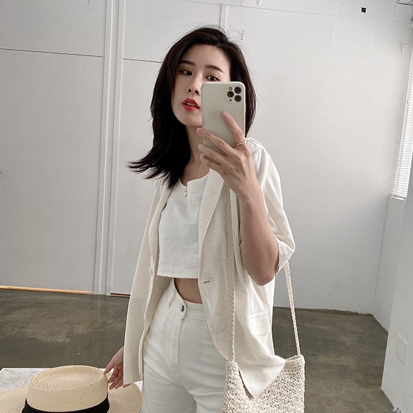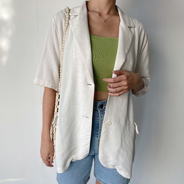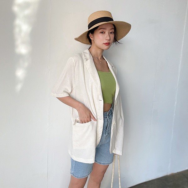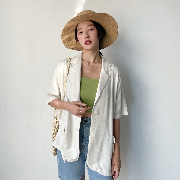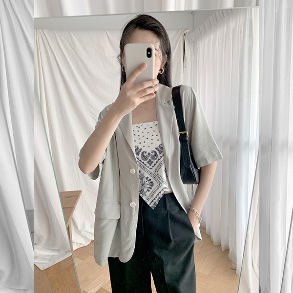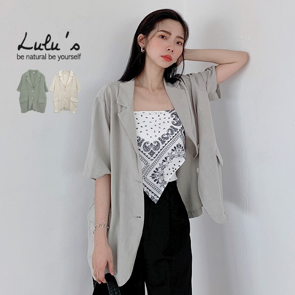 LULUS【A03210042】Y翻蓋口袋薄料短袖西裝外套2色0603